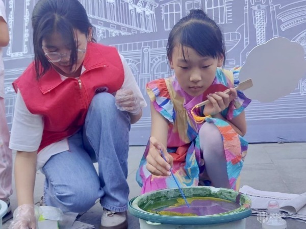 “大家看亚男姐姐这个手势,意味着我们要保持安静,来听老师的讲解!”“好的亚男姐姐!”孩子们跟随手势加入研学队伍,曾是支教老师的李亚男沿着老街区的沿途建筑,为孩子们讲解“中华巴洛克”这一建筑风格的融合变迁。在这堂趣味社科课上,团队成员们带着孩子们一起重新了解了城市的发展历程,在激发孩子们学习兴趣的同时,也拓展了他们对学术实践的认知范围。