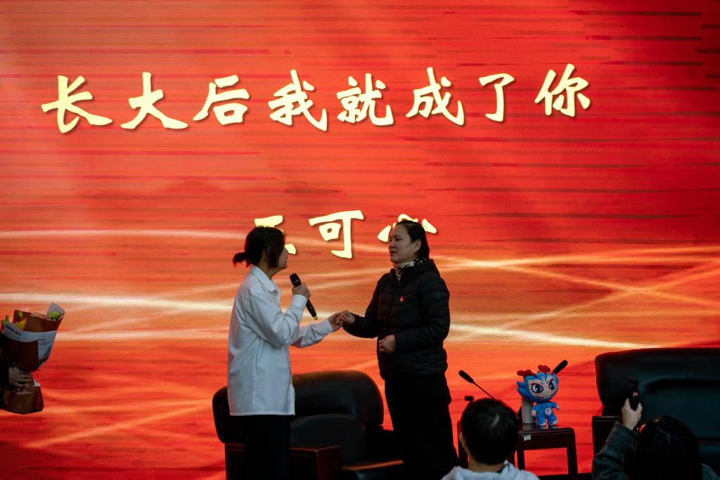 的学生以诗歌朗诵和歌曲演唱的方式向魏义霞老师表达了深深的敬意,感谢她为教育事业所做的一切。诗朗诵中,学子们将自己比作“粗糙的山石”、“黑土地上的麦粒”和“耀眼的雄鹰”,形象地描绘了在老师们的指导下,他们如何从璞玉成长为器,从麦粒成长到喜获丰收,从幼鸟到雄鹰展翅高飞。歌曲《长大后我就成了你》,唱出了同学们对魏老师的无限感激,也传达了他们立志成为像魏老师一样,能够启迪智慧、传承知识的教育者的决心。最后,热烈的掌声中同学们衷心祝愿魏老师生命之树常青,学术之树常实,桃李满天下,春晖遍四方。
