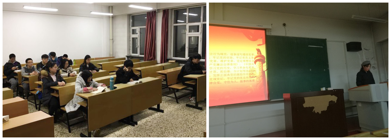 “两学一做”学习教育——学生党员讲党课于汇文楼937室顺利开展。本次党课由学生党支部委员田燃同学主讲。