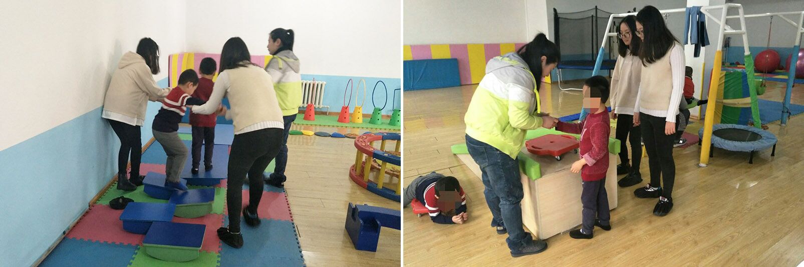 两年来,志愿者们每周都会来到帮教中心,陪孩子们训练、玩耍。看到我们的再次到来,孩子们非常欣喜,主动拉着我们参与到他们的训练中。志愿者们在幼教园老师的指导下对孩子们进行日常的感统训练,训练的内容包括跳床游戏、左右腿练习,抓球训练等,帮助孩子们锻炼平衡能力和对肢体的协调能力。志愿者牵着孩子的手,走上平衡木,走上滑梯,帮助孩子们提高身体的协调性。陪孩子们玩拼图、分捡豆子、学写数字、穿珠子,帮助孩子们训练专注力。在帮教的过程中,志愿者们用最诚挚的微笑,获得了孩子们的信任;用最大的耐心和爱心,帮助孩子们克服恐惧,突破自我。看到孩子们一天天在努力、在进步,志愿者们同样十分感动。