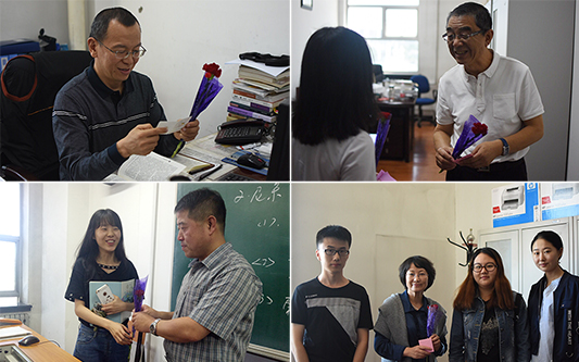 9月8日,班委会积极组织同学们在上课前向任课老师起立问好行礼,将承载浓浓感恩之情的鲜花和亲手制作的贺卡赠给老师,祝老师节日快乐。学生会同学利用课间休息时间来到教师办公室,送去节日的问候。一朵鲜花和一张张贺卡承载着哲学学子对老师们的衷心感谢和诚挚祝福,感谢老师们在学业上悉心指导和生活中的贴心帮助。温暖的油墨用文字诉说着哲学学子对老师的拳拳爱意;鲜艳的花朵、馥郁的芳香弥漫在老师与同学们之间,久久不散。老师们也表示,虽然每一年都会收到来自同学们不一样的惊喜,但变的是方式,不变的是同学们带来的深深感动。