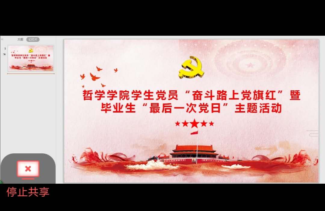 学生党支部于2020年6月30日19:30举办了毕业生党员“最后一次党日”暨“奋斗路上党旗红”庆七一主题活动。