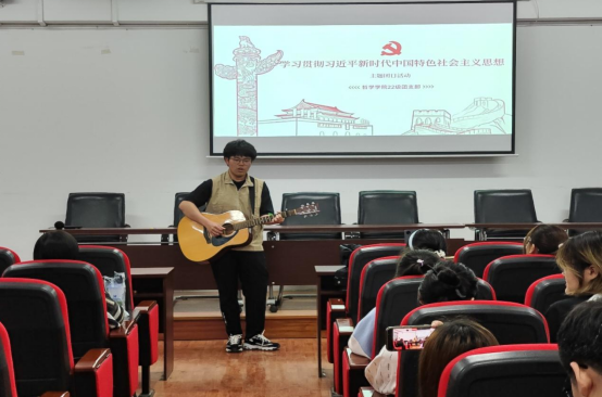 时代创造美好未来,青年追光砥砺前行!最后,由栾丰河、朱婧瑄、王敏康、王佳仪四位同学为大家献唱的《追光者》,在这落幕的表演中,同学们跟着一起和声高唱,在团结圆满的氛围中顺利的结束了本次的团日活动。