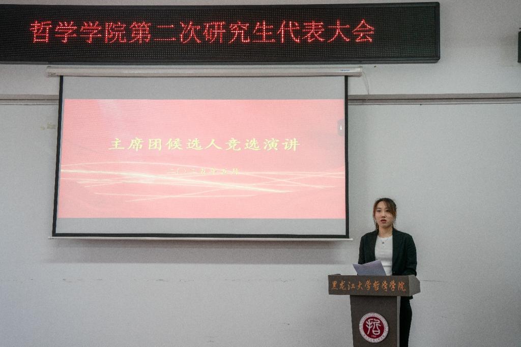 第二届研究生会主席团五位竞选人根据抽签顺序发表竞选演讲。