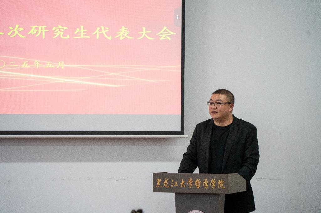 党委副书记王贵宇对本次会议进行总结,他充分肯定研究生二级管理一年来研究生会的工作成果,对第一届研究生会成员的担当与奉献表达了感谢。他也勉励新成员要传承初心,以服务同学为己任,勇担使命,在学术与实践中展现哲学人的担当,谱写青春新篇章。