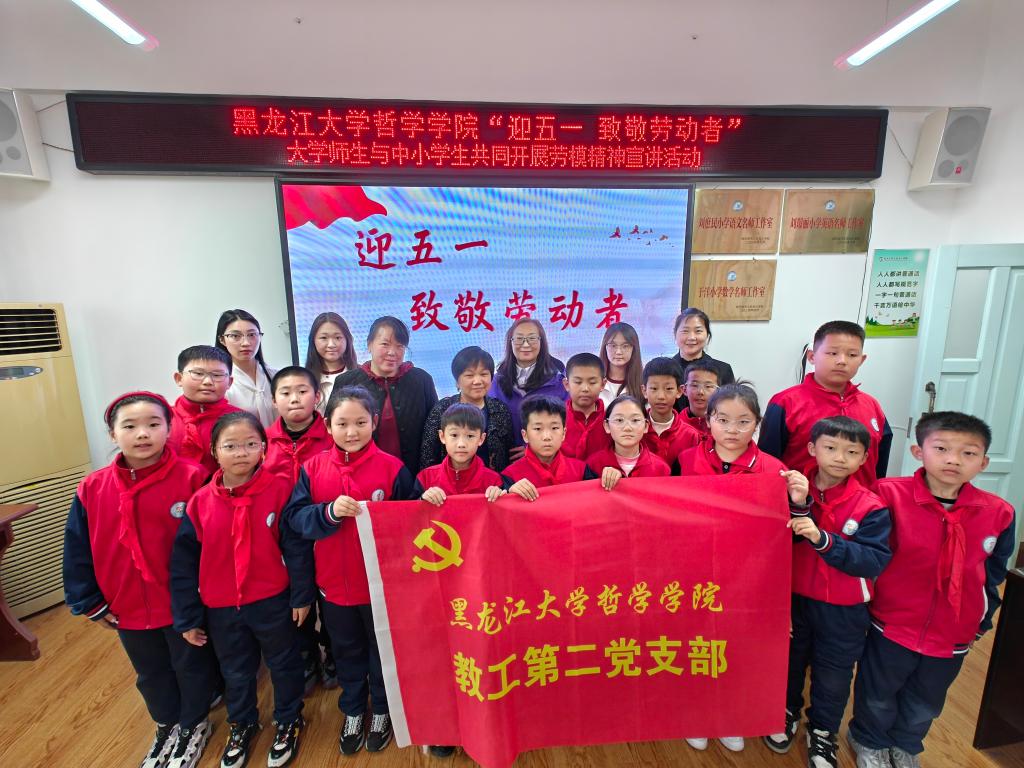 教工第二党支部、博士生党支部、2024级硕士生党支部、2023级本科生党支部的身份,以红研团队、哲漾践学、哲思星火、哲漾青春等学生组织成员的身份,以《黑龙江省中小学红色研学路线的开发与普及》课题组研究为依托,分别前往哈尔滨市继红小学、红岩小学、铁岭小学、工农兵小学、旭东中学多所学校,为师生们奉献了一场红色文化与劳模精神的盛宴,打造了一场大学师生与中小学生联合开展的思政课,活动得到了各中小学的配合与支持。