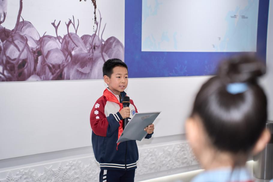 学生志愿者赵子瑶,则带来了赛场一线的青春故事。她用自己的亲身经历,向弟弟妹妹们生动诠释了冰雪精神。活动的最后,清滨小学的齐绍博分享了本次研学感悟“以前滑冰只为快乐,今天才懂,冰场凝结着城市记忆,我们的每次飞驰都在续写新的篇章。”