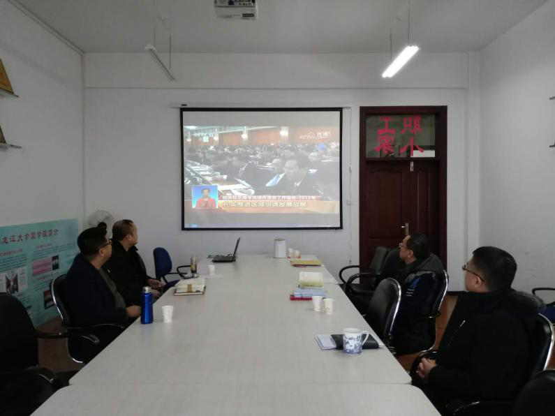 领导班子于汇文楼922室同步观看了开幕式现场直播,聆听李克强向大会作的《政府工作报告》,认真学习“两会”精神。