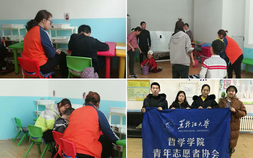在幼教园老师的带领下,志愿者们尝试着用科学的方法与孩子们有效地进行沟通,经过短暂的交流后,孩子们迅速和志愿者们熟络起来,幼教园里充满着欢乐的气息。志愿者们配合老师帮助孩子们开展了相应的康复训练,以游戏的方式帮助孩子们克服在知觉、情感、语言、思维和动作等方面的障碍,他们默契配合,顺利地完成了康复训练。游戏结束后,志愿者们陪伴孩子们学习知识,帮助他们进行吐字发音,这样的练习有助于提高他们的语言理解能力和运用能力,打开孩子们的内心,使孩子们更好地与人表达沟通。志愿者们还和孩子们一起唱歌、跳舞、画画等,与孩子们和谐相处,教室里洋溢着轻松愉悦的气氛。