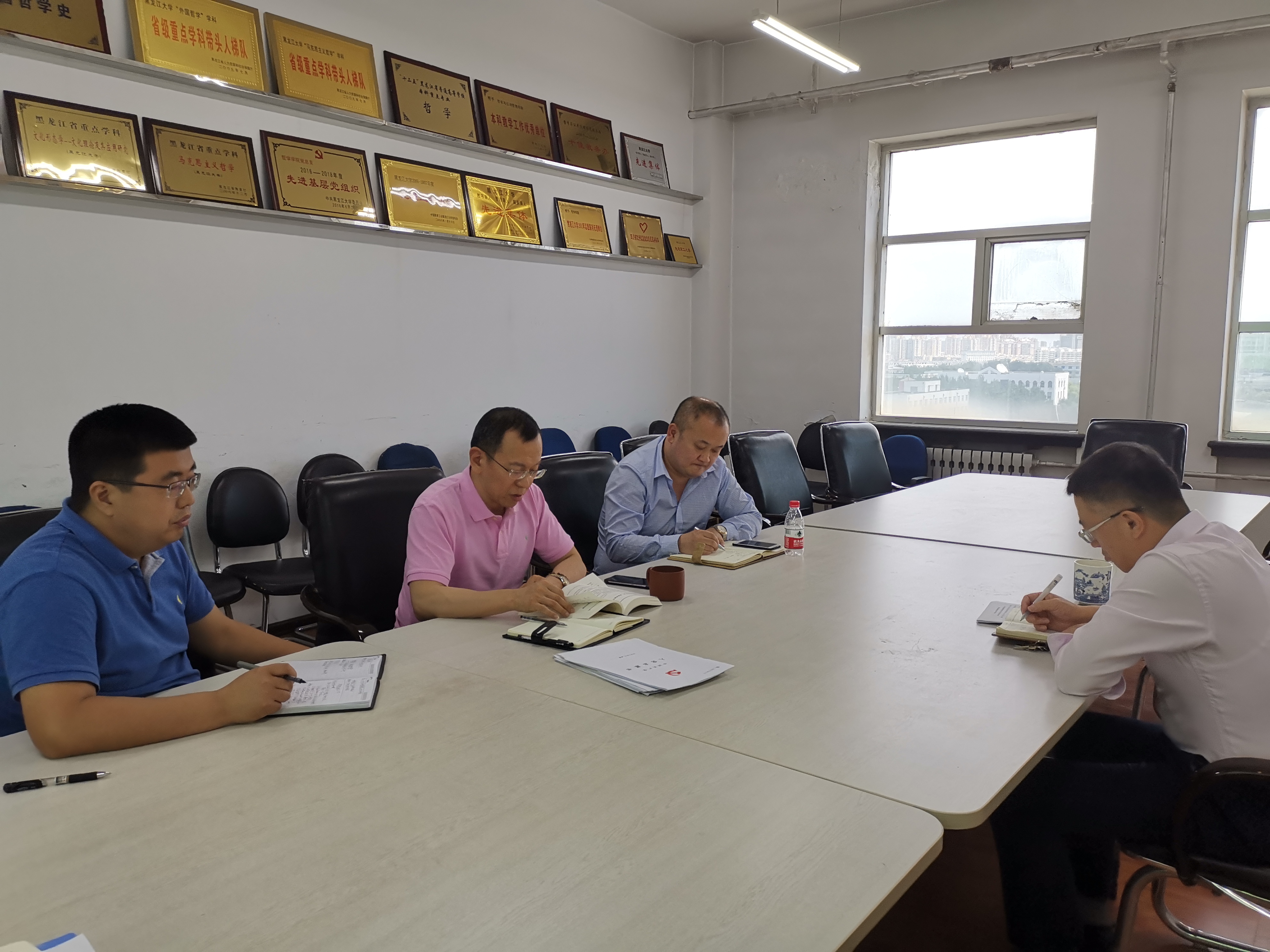 理论中心组学习计划安排,6月17日上午9时,在学院党总支书记孙庆斌同志的带领下理论中心组成员在汇文楼922集中学习了《习近平总书记关于“不忘初心、牢记使命”重要论述选编》。