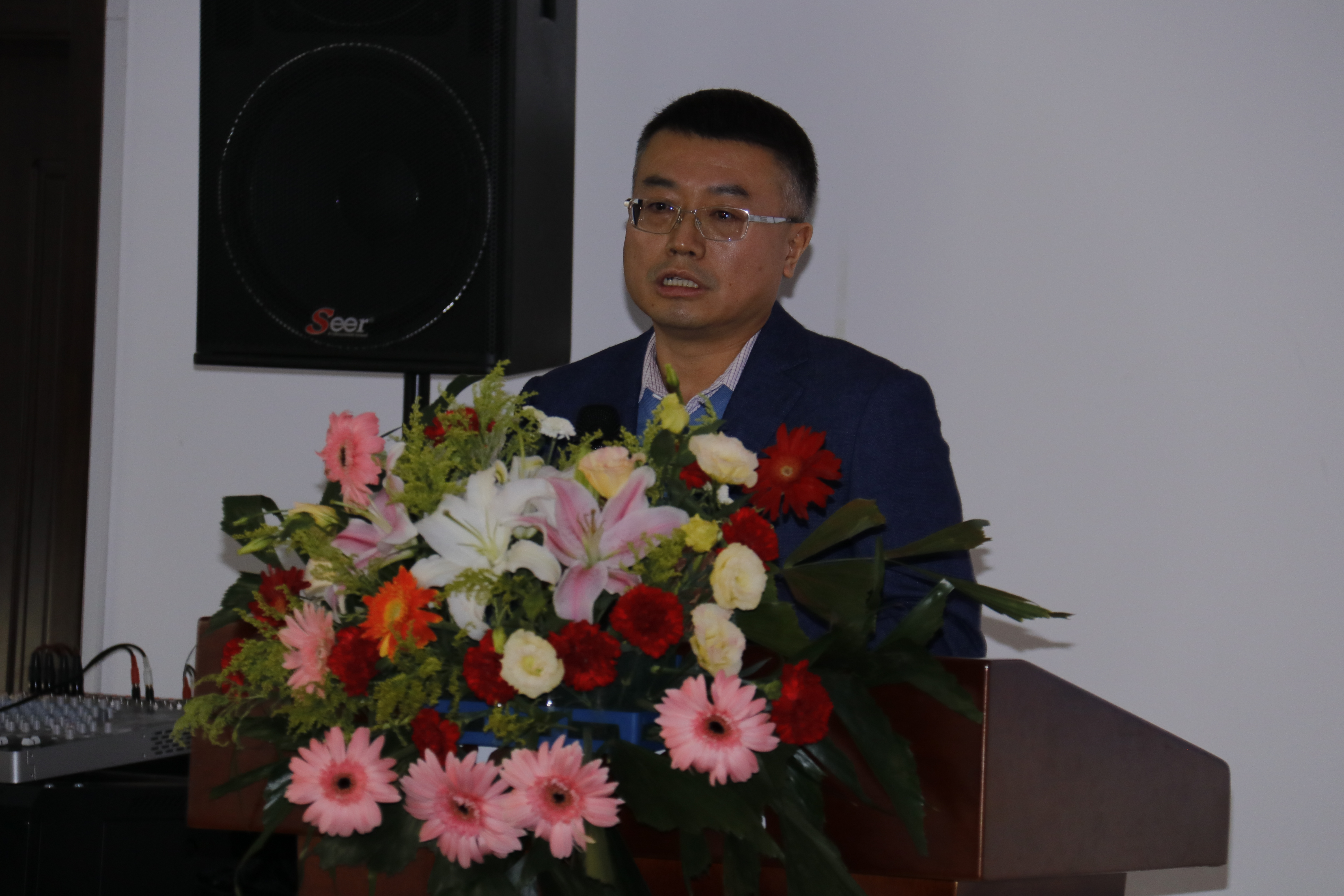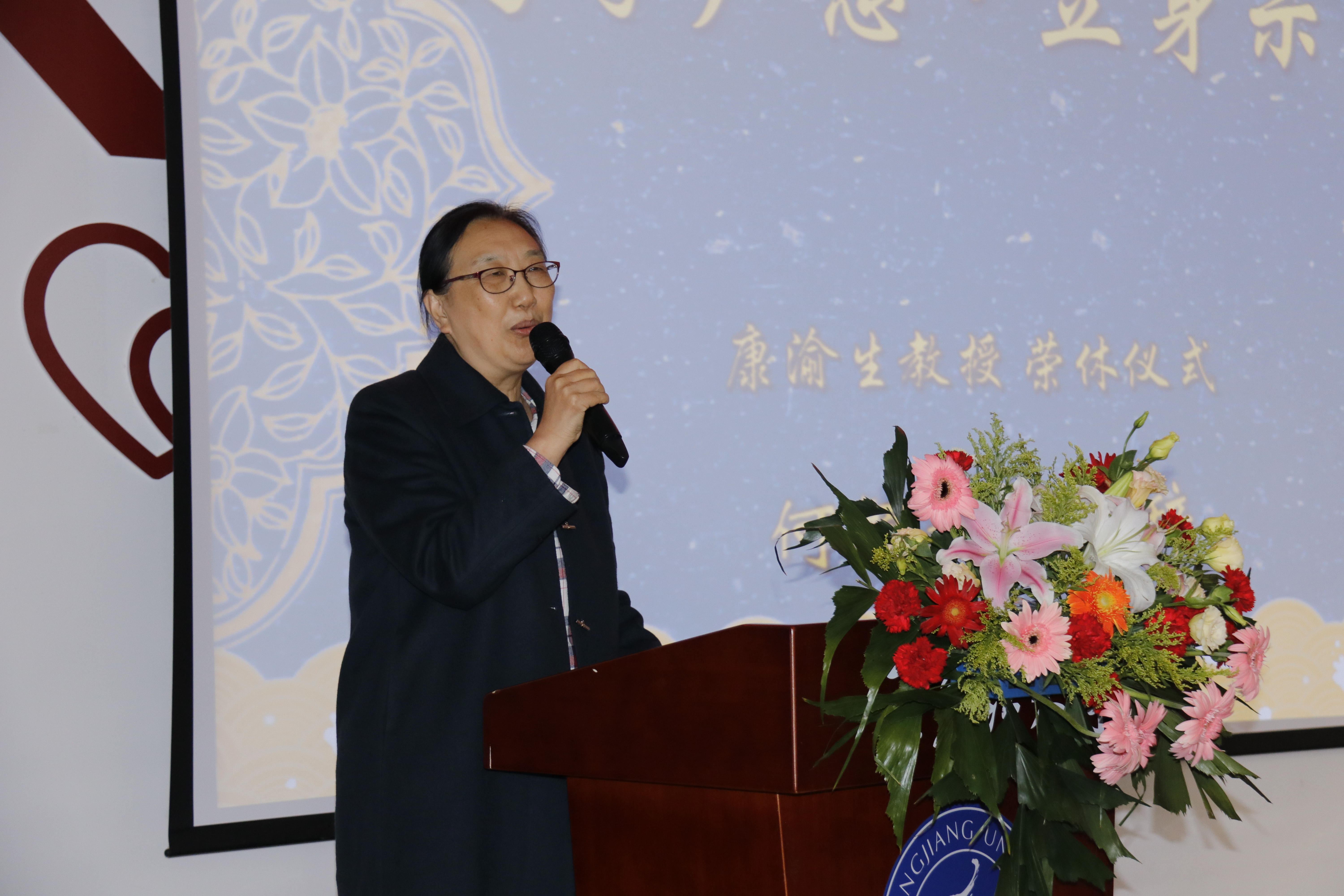 院长罗跃军代表学院师生全体为康老师送上了荣休祝福,他肯定了康老师在学院发展、学科建设上做出的贡献,期盼老师能够在学院今后的发展中继续建言献策,发挥余热。