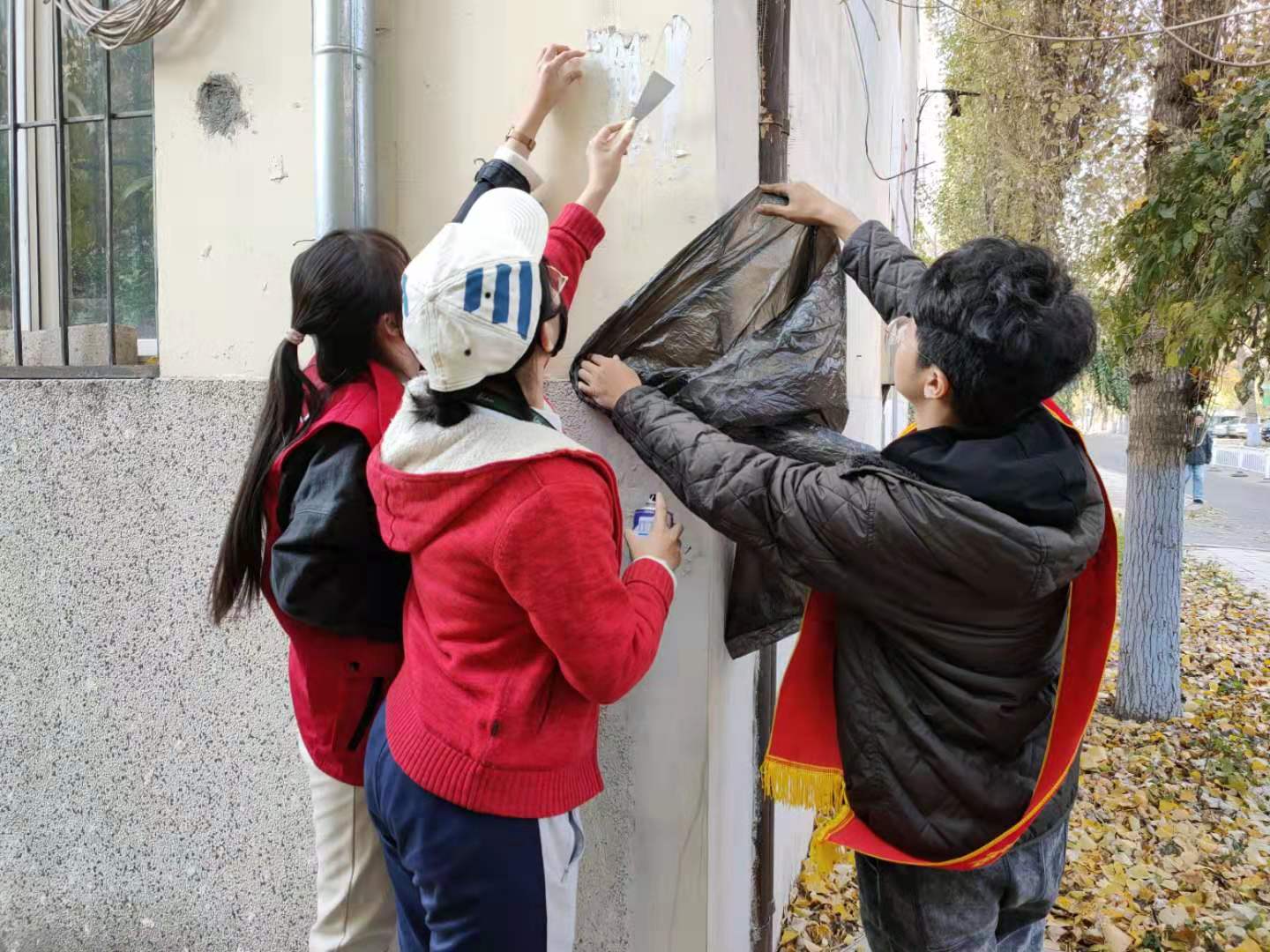 第二小组进行了清理路边小广告的活动。在清理路边广告中,青年志愿者还互相帮助,你来铲,我来撕,相互合作,在一定程度上发挥和体现了团队协作精神,小组成员们克服了在清理过程中的种种困难与阻碍,顺利地完成了清理工作。