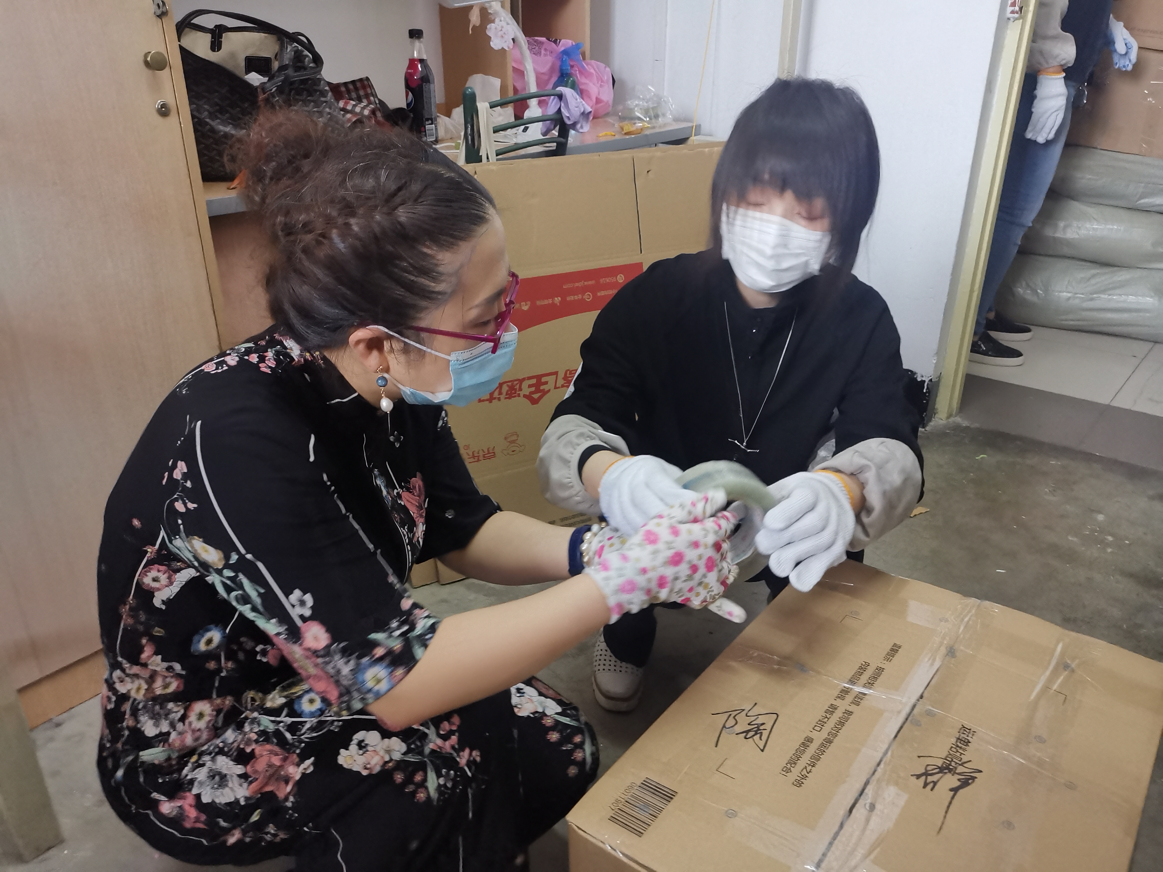 在打包行李的过程中,老师们与学生进行现场视频连线,对行李进行一一分类取舍。老师们细致认真,周到负责,一件件整齐码放,一箱箱封好邮寄,老师们挥汗如雨,露出欣慰的笑容,沉甸甸的行李包含着母校和老师对毕学子深沉的爱和浓浓的祝福。