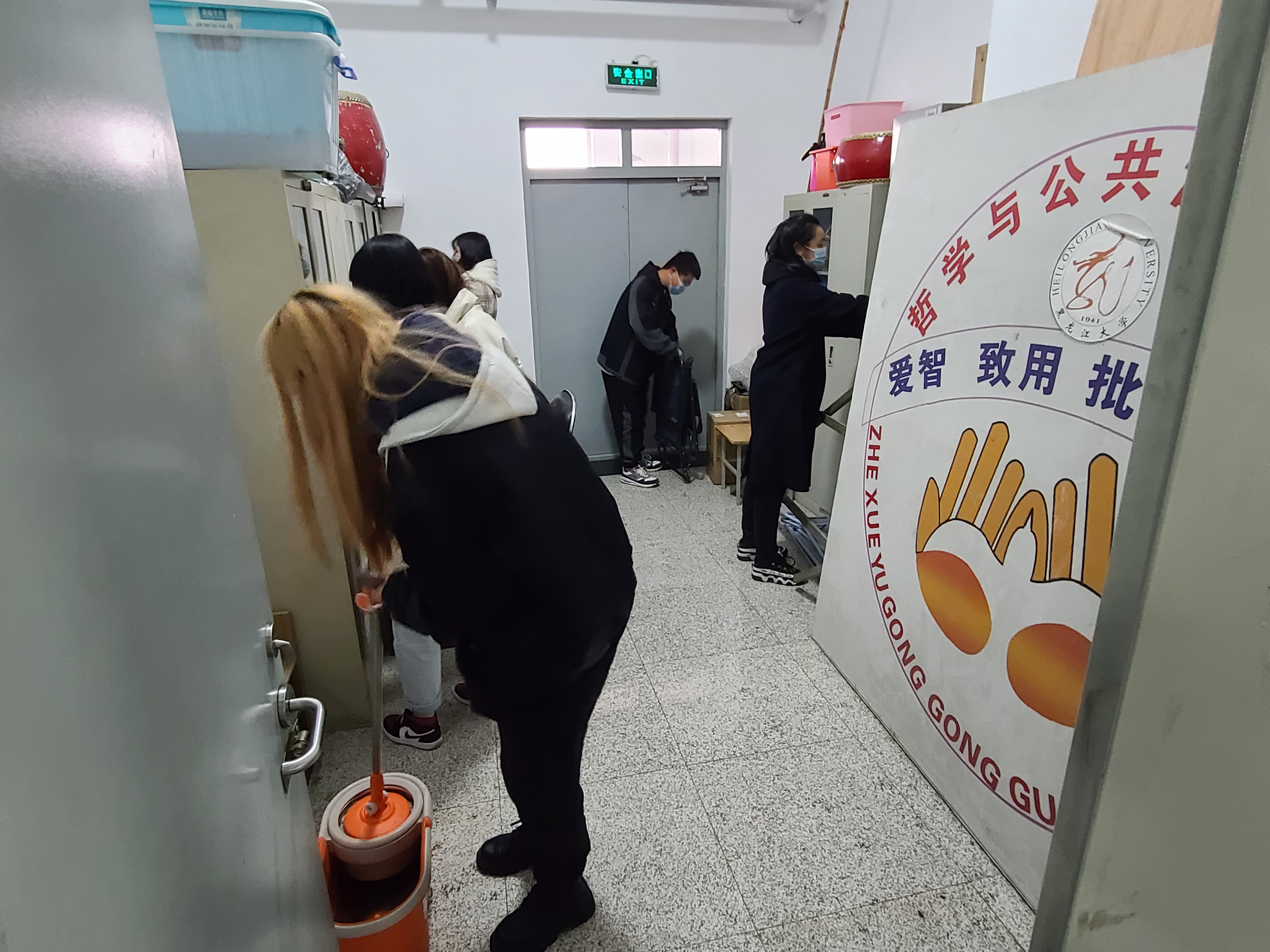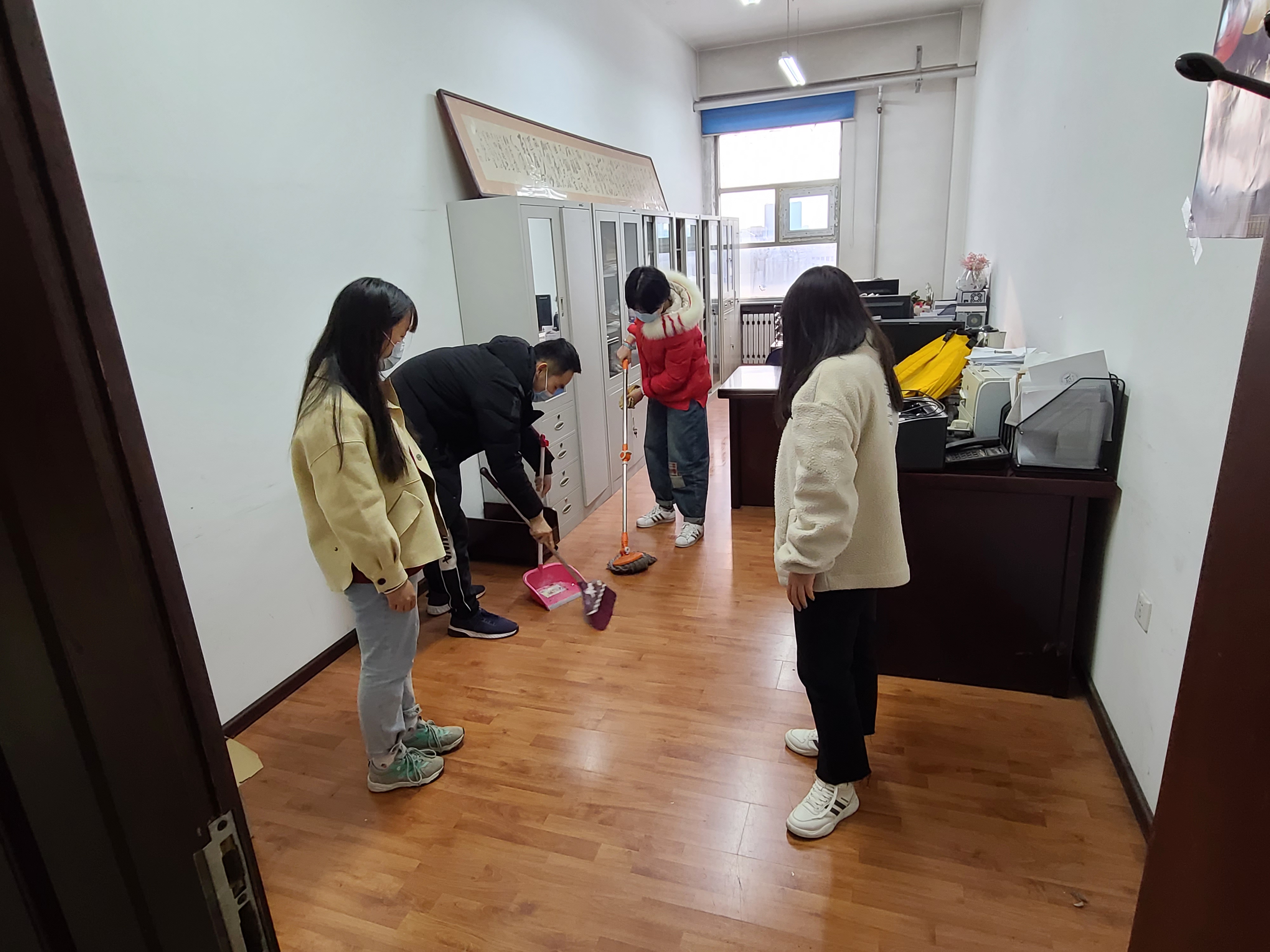 在活动中,主要组织学院青年志愿者针对汇文楼部分教室办公场所的卫生进行了清洁工作,同学们认真拖地扫地,将杂物分类码放整齐,充分表现了h韩漫
