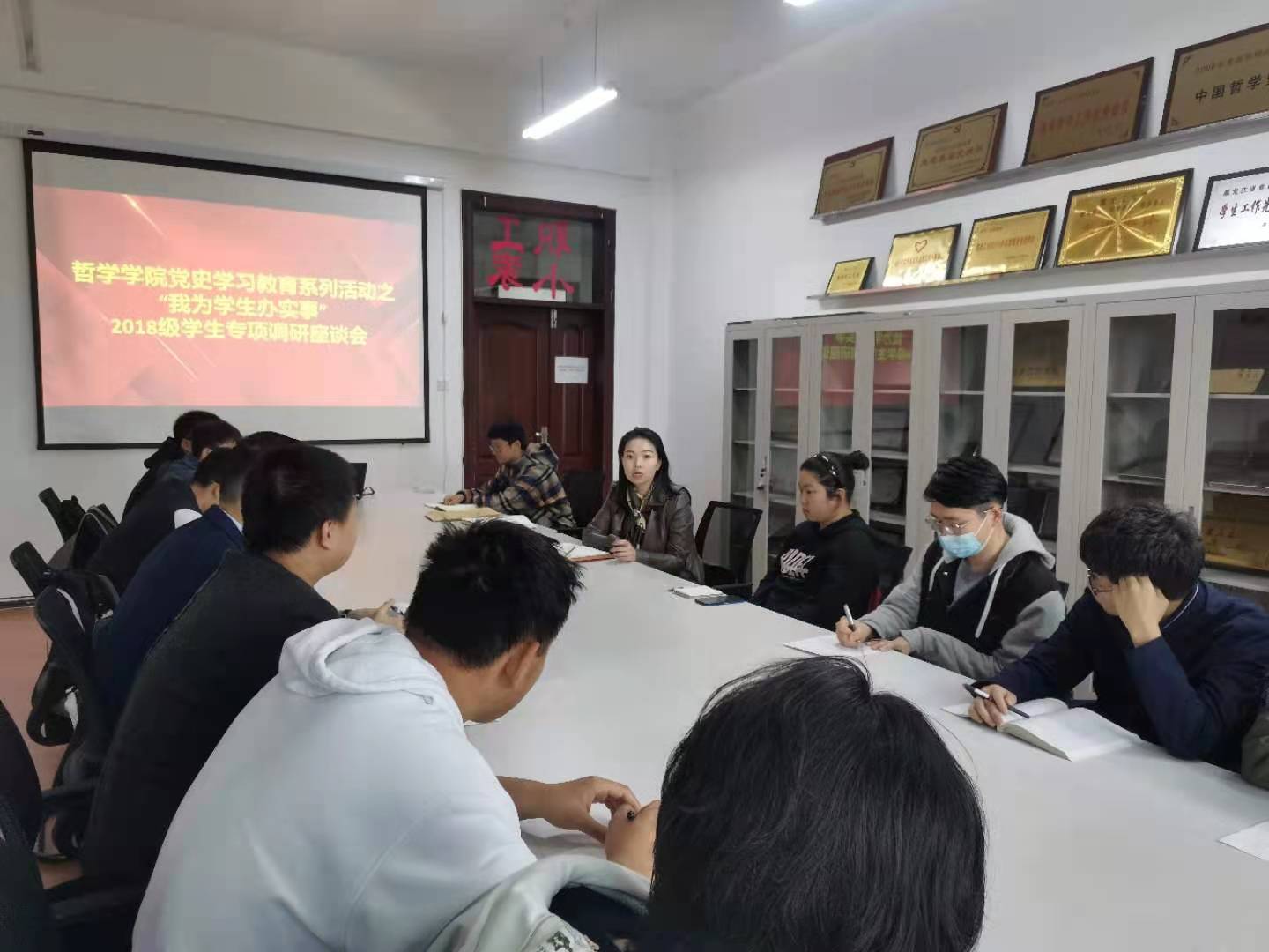 于4月28日-30日召开“我为学生办实事”各年级专项调研座谈会。学院党总支副书记张丽丹、辅导员孙庆斌、张博伦出席会议,各年级学生代表参加座谈会。