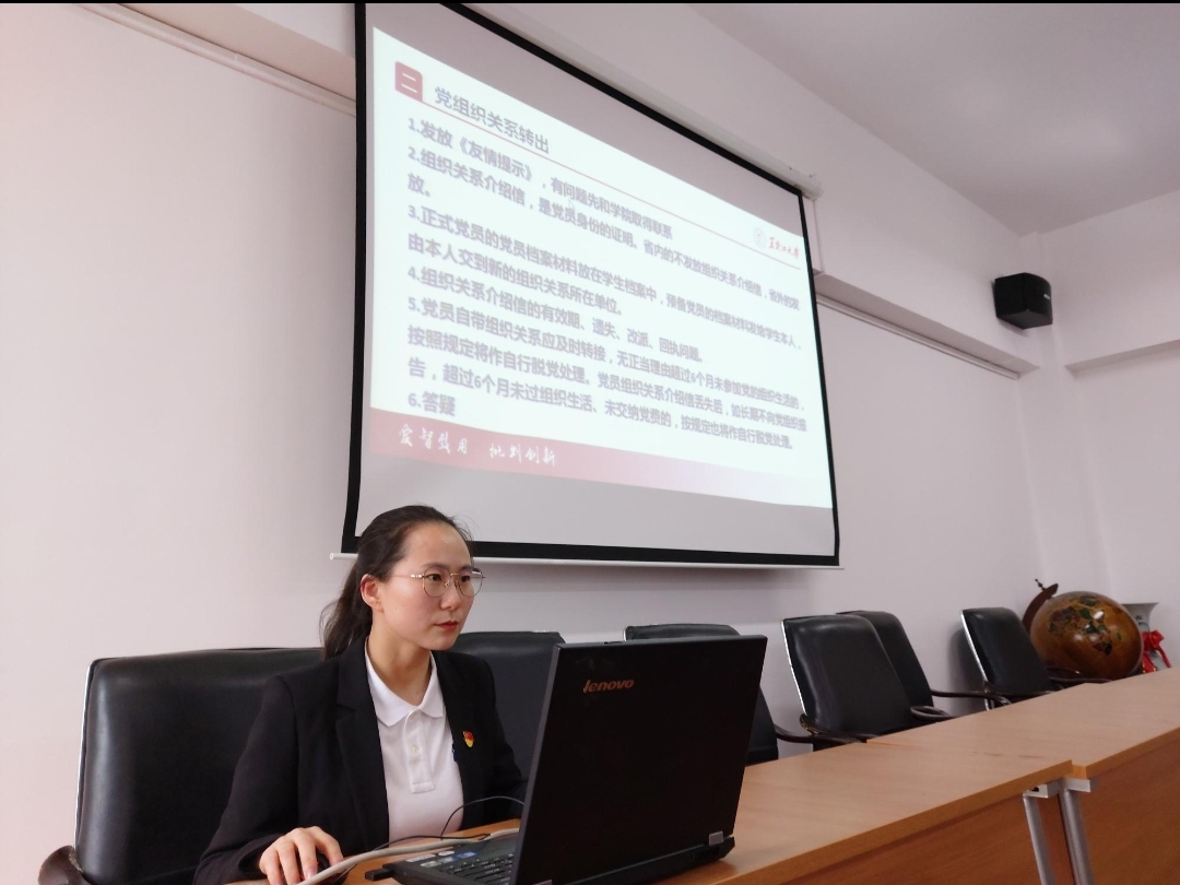 张丽丹副书记强调毕业生党员要立足本职,积极配合学院完成各项离校工作,站好“最后一班岗”。同时,要带动身边人主动参与到各项活动中来,发挥党员的榜样力量。黄影老师针对毕业生党员组织关系转出及注意事项做了详细说明,对于毕业后预备党员接续培养做了介绍,提醒各位党员及时到转入单位报到。孙庆斌老师就接下来的毕业生文明离校相关工作、党史学习教育进行了具体安排和指导。