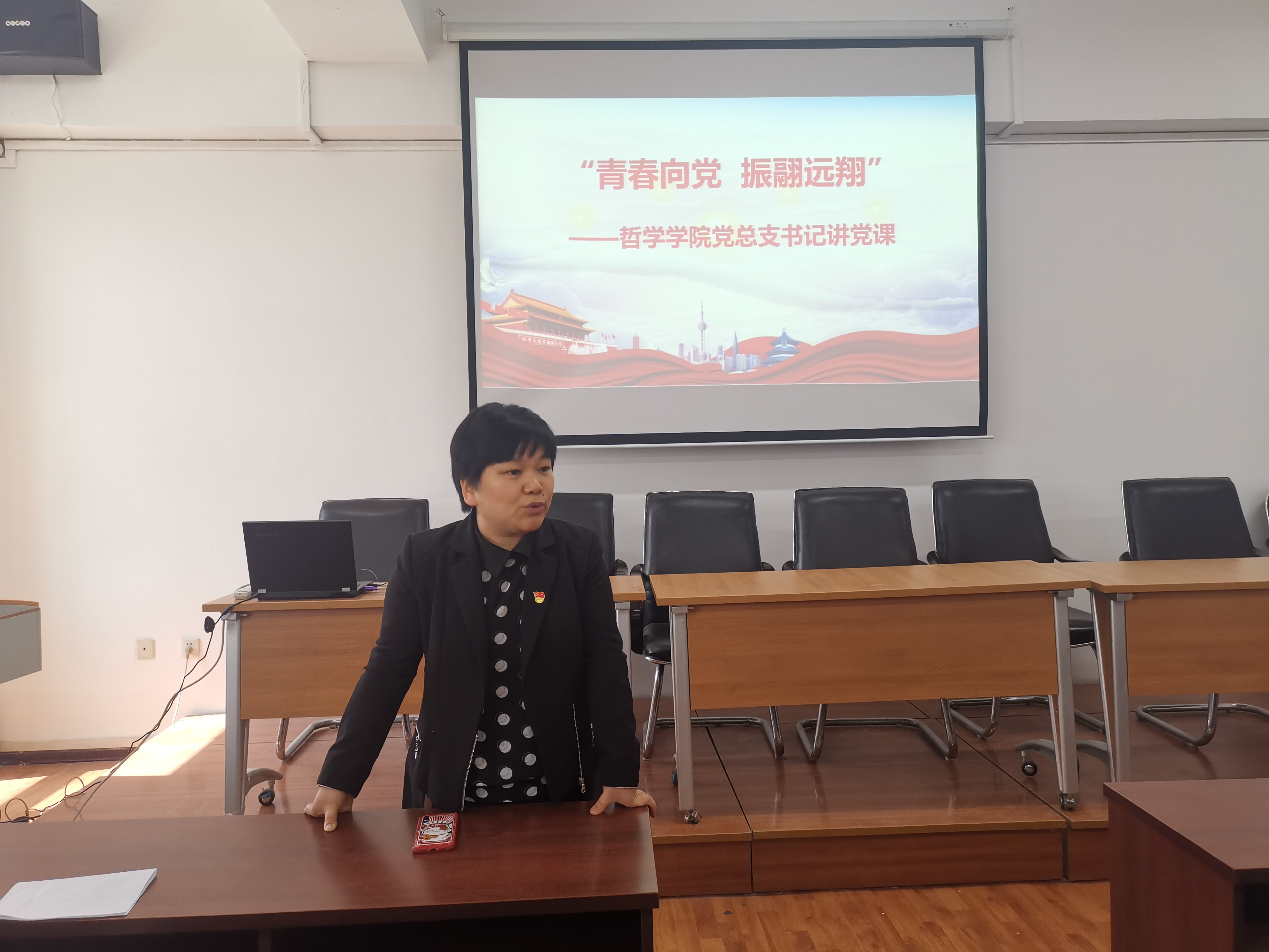 学院于2021年5月24日15时在汇文楼937教室为全体党员毕业生举办了题为《青春向党,振翮远翔》“最后一堂党课”。此次党课由学院党总支书记孙美晖主讲,学院党总支副书记张丽丹、正处级辅导员孙庆斌、党总支秘书黄影以及全体毕业生党员集体参加。