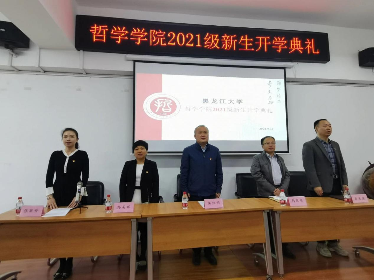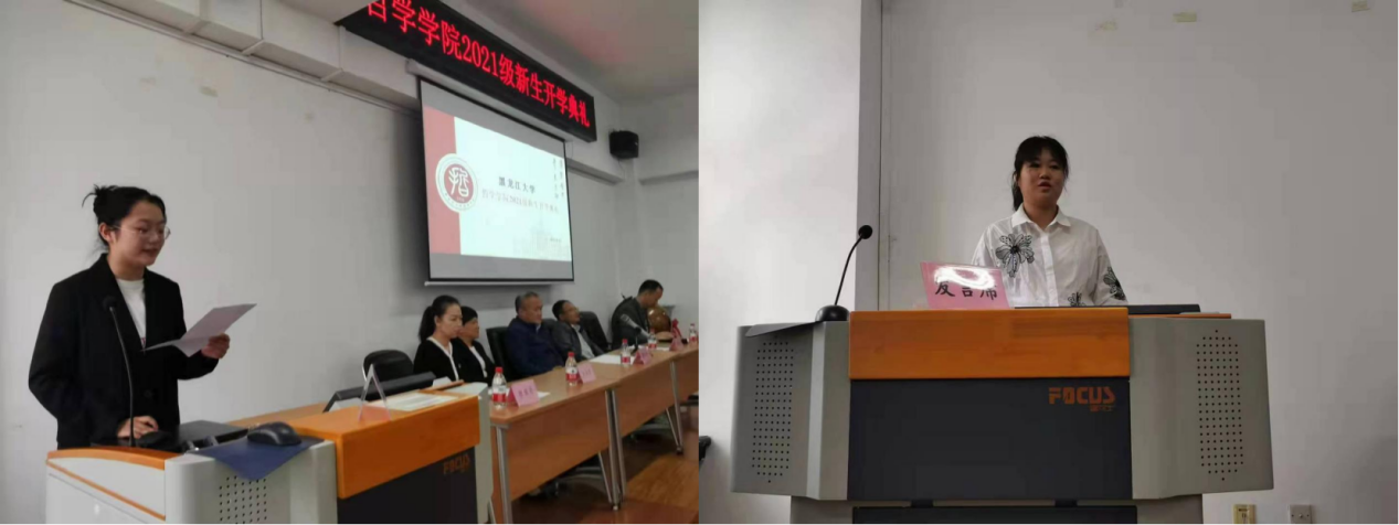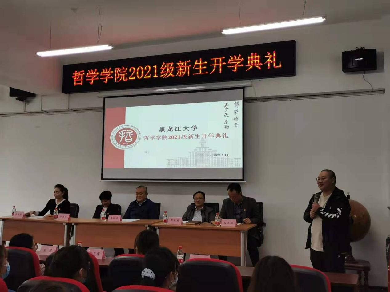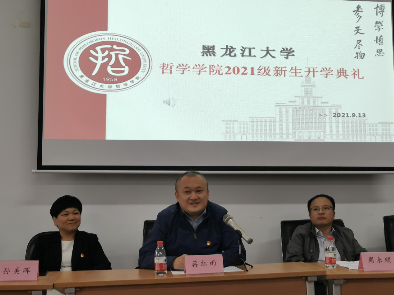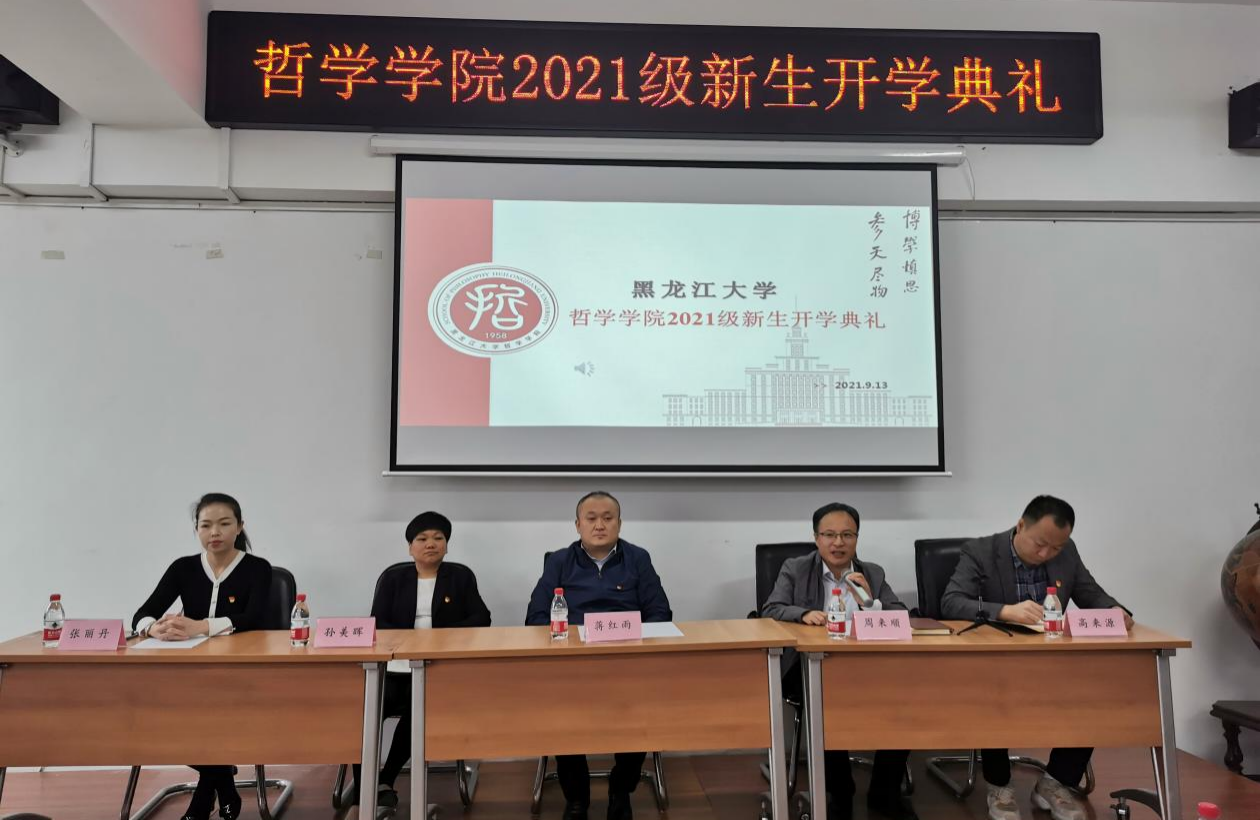 2021级新生开学典礼在汇文楼937室举行。哲学学院党总支书记孙美晖、院长蒋红雨、副院长周来顺、副院长高来源、党总支副书记张丽丹、2021级班主任于跃、张灵馨、彭洋、2021级辅导员焦瑞、2021级全体新生出席本次典礼。