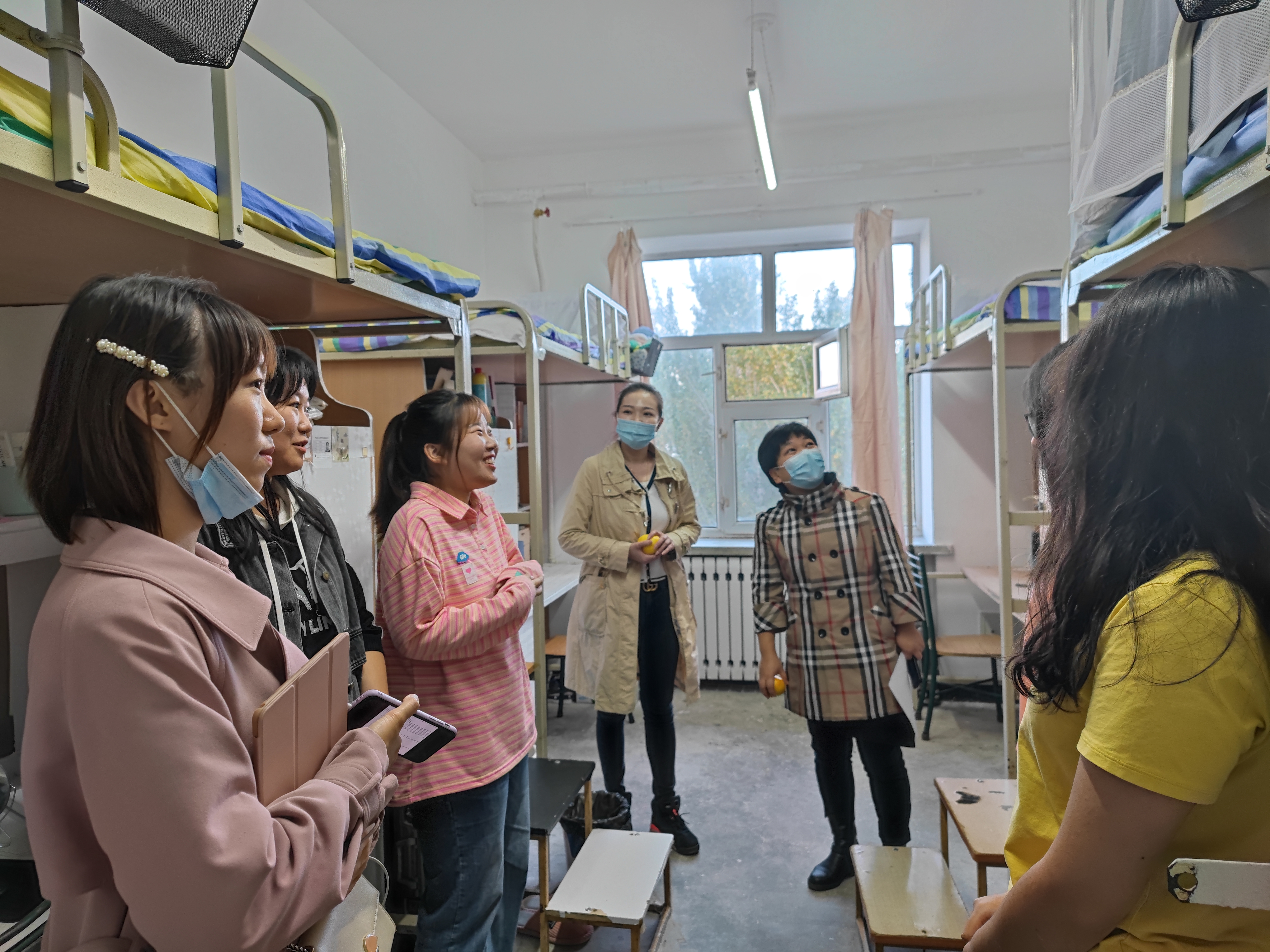 党总支书记孙美晖、院长蒋红雨、党总支副书记张丽丹、副院长高来源、21级新生辅导员焦瑞亲切探望了C22栋、C24栋公寓楼的新生,了解新生学习和生活情况,为新生送上新学期的关心和温暖。