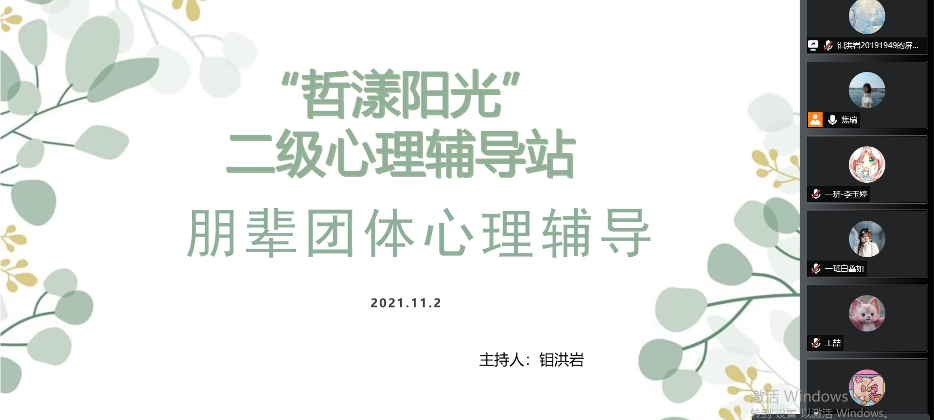 学生的健康成长,“哲漾阳光”二级心理辅导站于11月2日下午一点召开了朋辈团体心理辅导、寝室心里联络员培训会。二级心理辅导站副站长钼洪岩,21级辅导员焦瑞,21级朋辈心理辅导员以及寝室心理联络员参加本次会议。