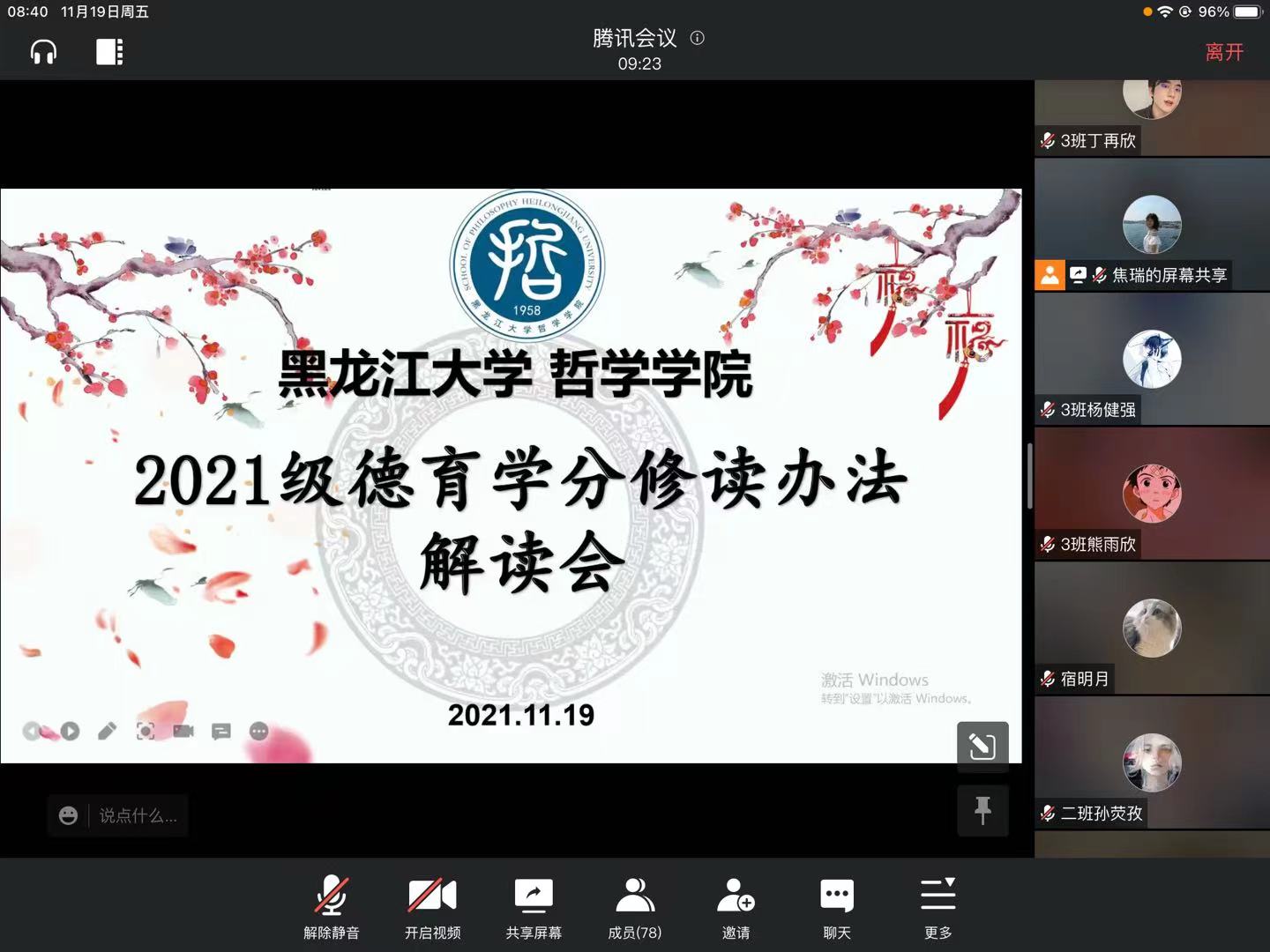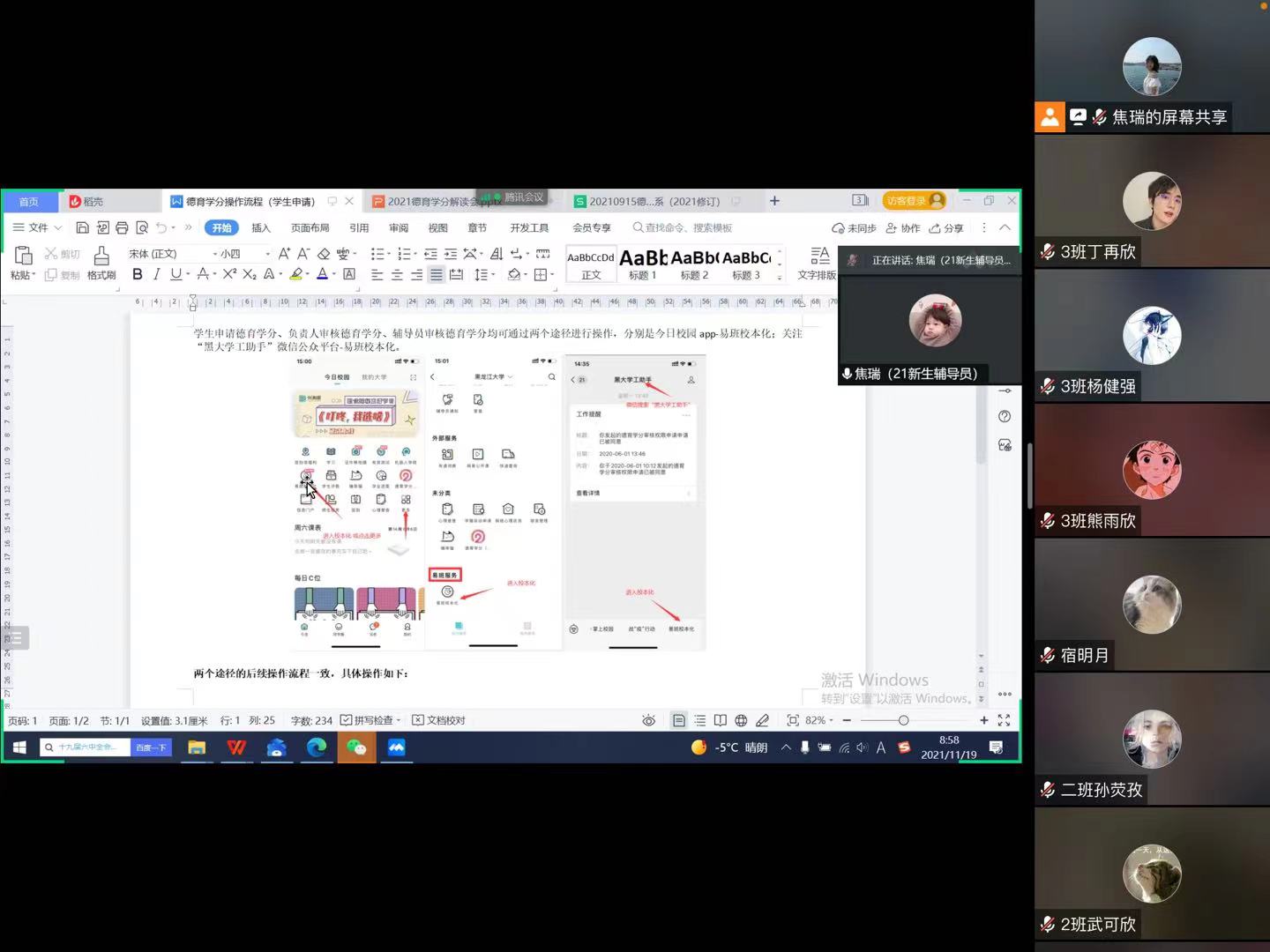 于2021年11月19日8时40分面向全体21级新生,召开了“2021级德育学分修读办法解读会”。此次会议由新生辅导员焦瑞老师主持,h韩漫
