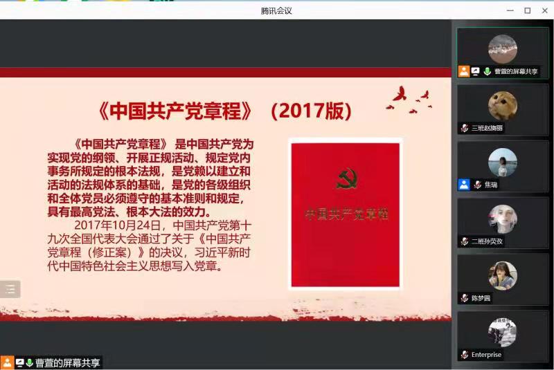 首先,曹萱学长带领同学们了解了《中国共产党章程》的完善发展历程及重要地位。他指出,《中国共产党章程》是中国共产党为实现党的纲领、规定党内事务的根本法规,是党的各级组织和全体党员必须遵守的基本准则和规定,具有最高党法、根本大法的效力。因此,学习《中国共产党章程》是十分重要且必要的。