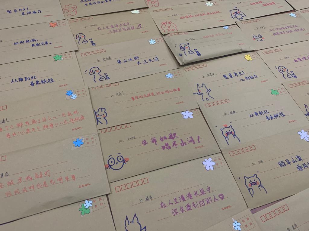 见字如晤,信展颜舒。同学们在拆开信封的那一刻充满了喜悦,原来,这是一份意义特别的礼物,一个个画着可爱漫画的信封里,是家长们亲手写给孩子们的信。手写信是这个时代的奢侈品,而这封来自家长的信显得更加珍贵。一封封的手写信让大家在这个疫情肆虐的寒冬感受到了家的温暖。