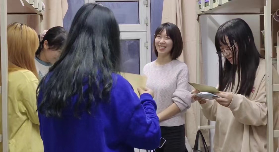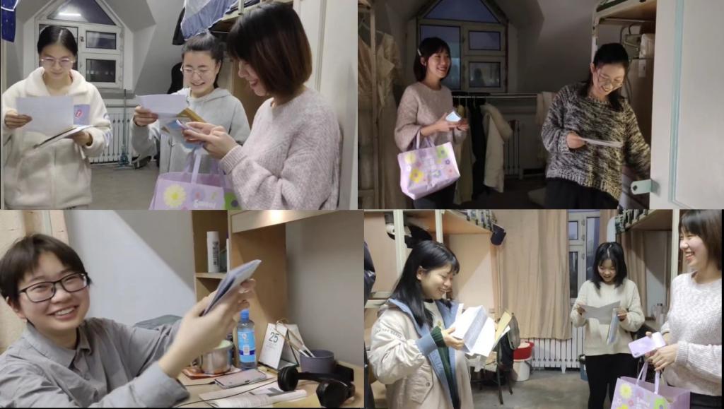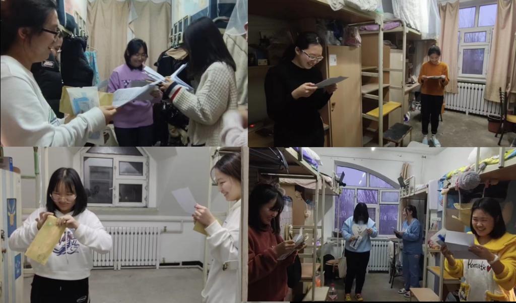 上一次相见还是夏山如碧,再奔赴相见便是白雪皑皑。背上行囊,步履坚定,坐上前行的火车,踏上征程......一转眼,21级的同学们离家在外已3月有余。当下,全校防疫,共克时艰,哲院师生,同心同德,为减少疫情给同学们带来的困扰与紧张,安抚同学们对父母对家人的思念,21级辅导员焦瑞老师开展了“走访寝室送家书”暖心活动,焦老师悄悄为大家准备了一份珍贵的礼物——父母手写信,家长们手写拍照发给焦老师,焦老师逐一整理打印装进信封。12月10日,焦老师走访寝室,为同学们送了一些防疫用品,关怀同学们的学习生活,同时,把珍贵的家长手写信递到了同学们手中,为大家带来父母的叮咛、嘱托与爱。
