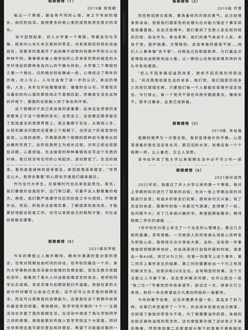面对学院全体同学举行打卡一篇假期感悟的活动,请同学们结合假期学习和生活经历,或结合抗击疫情过程中的感人故事,回味假期,总结收获,用文字记录个人成长,留住假期的美好记忆。