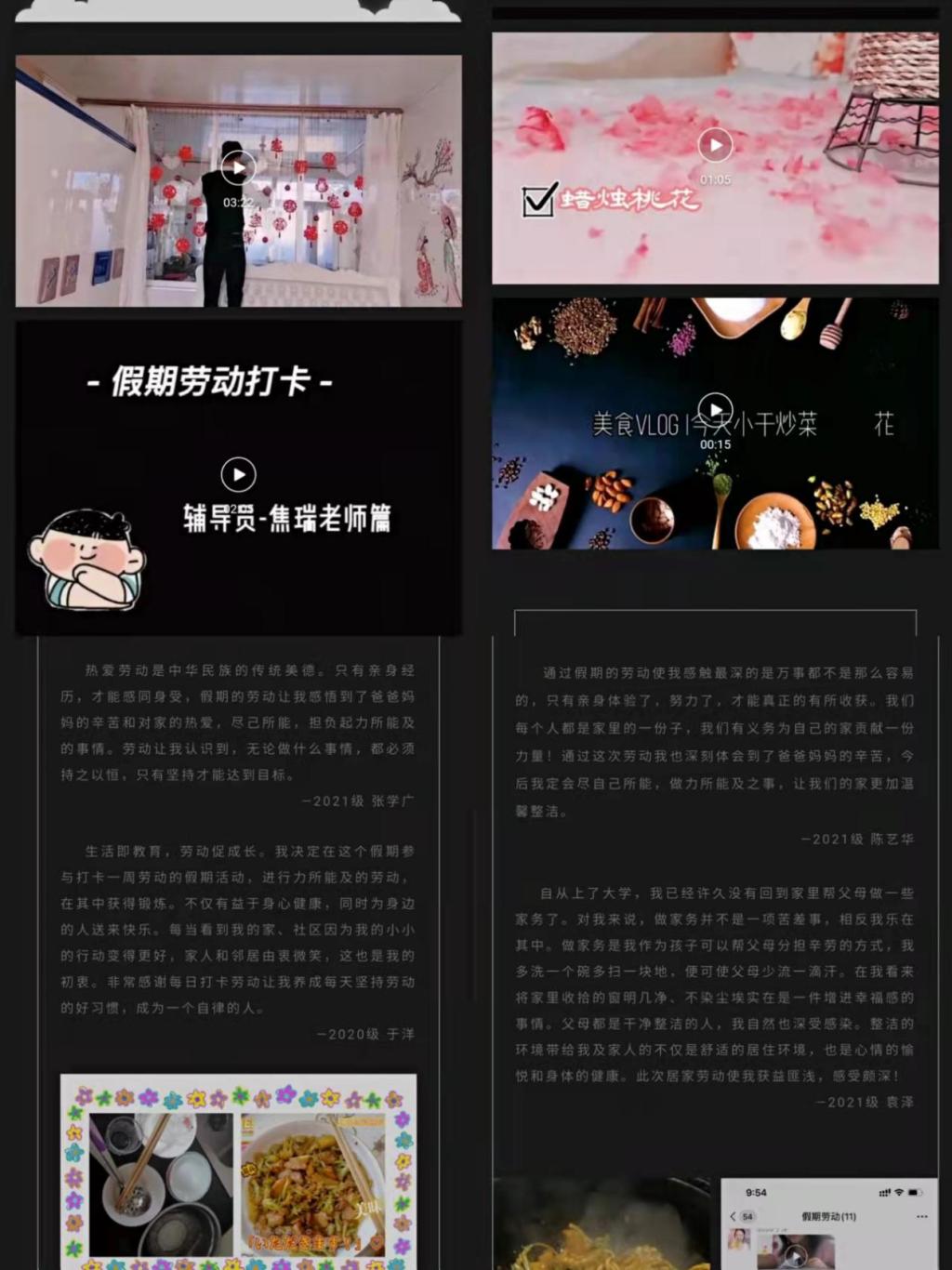 组织全体同学们充分利用空闲时光,学习劳动楷模,争当劳动小能手。在保证安全的前提下,进行志愿服务或者打扫家务,帮助家里、社区进行劳动,我们发现各位同学都有着不错的劳动、动手能力,也有为家庭、社会做出贡献的热情和责任感,转眼间本次活动已经落下了帷幕,感谢各位同学的积极响应,本次活动获得了喜人的收获。
