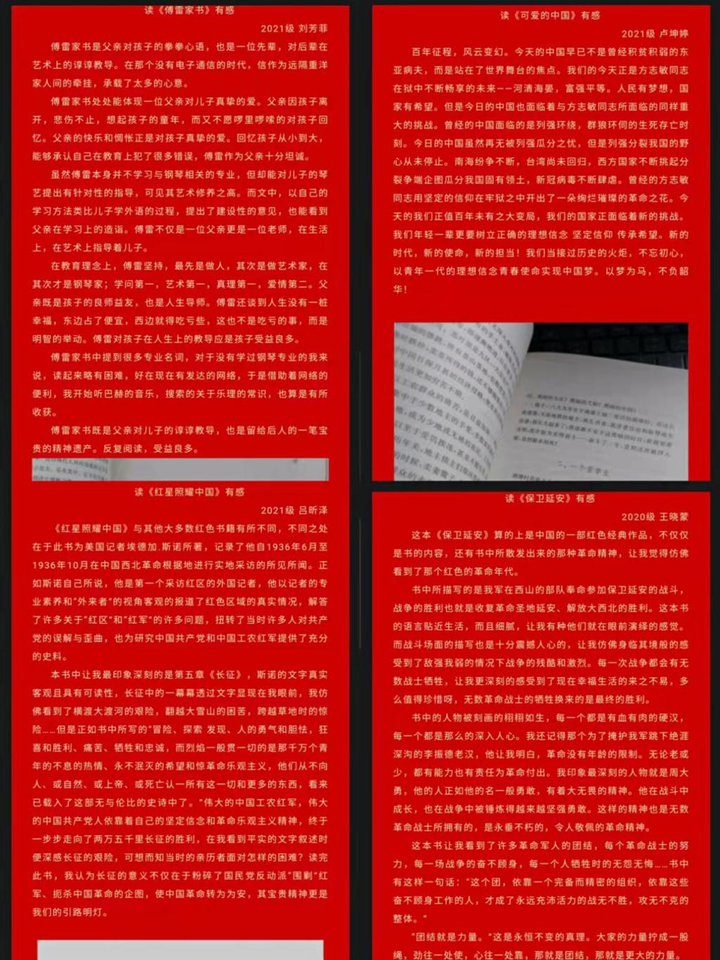 号召各位同学在寒假期间阅读红色书籍,学习党史知识,领会党的十九届六中全会精神,把握时代的脉搏,奋力未来的成长。通过一个假期的号召和组织,本次活动成效颇丰,引来了许多的同学参加,也激励了更多的同学了解红色文化,养成阅读、了解红色历史的习惯,铭记历史方可知兴替,以史为鉴,自立自强,相信各位同学能在阅读红色书籍的过程中增长才干、汲取红色书籍中的优秀养分为自己所用,获得更好的发展,树立更健全的人格。