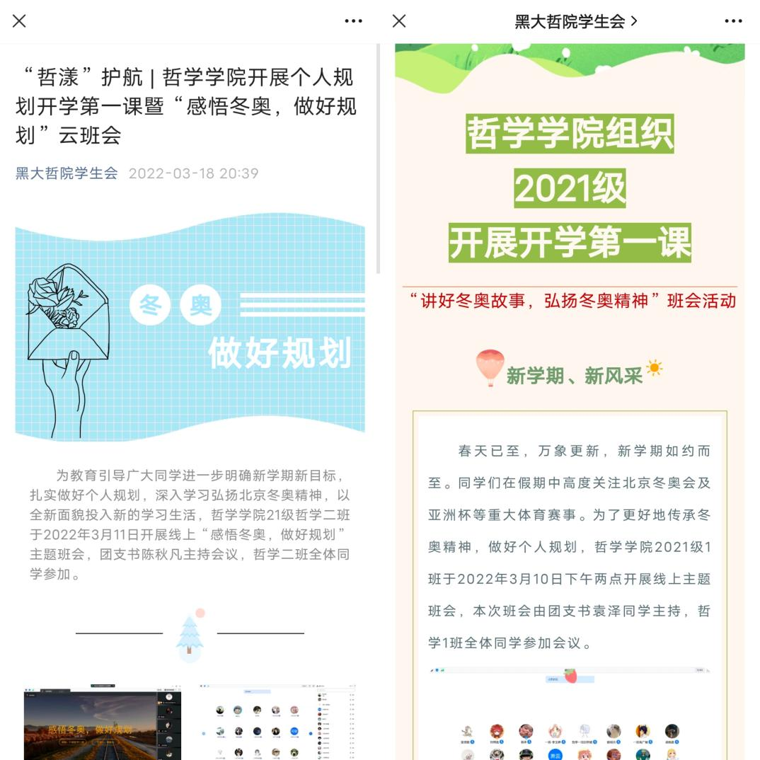 21级学生分别召开“感悟冬奥,做好规划”、“讲好冬奥故事,弘扬冬奥精神”3场主题班会。班会中,同学们结合北京冬奥、中国女足亚洲杯等体育盛会、赛事,学习冬奥健儿和女足队员的爱国情操和拼搏精神,各班同学对大学四年做出个人规划,并积极交流所思所想。躬身实践,知行合一。同学们在班会上积极发言,表示新学期要养成良好的学习习惯,上课专心听讲,积极向老师请教问题,利用空余时间做好学习规划,广泛阅读有关专业的专业书籍。做好传承,勇于创新。同学们提出在新一学期积极参与学校活动,积极投身于劳动实践之中,发挥专业能力,争做创新青年。练就过硬本领,坚守初心使命。此次班会有效引导学生秉承拼搏精神、爱国精神,在今天的道路上、未来的日子里,不断开拓新视野、创造新思维、构筑新格局。