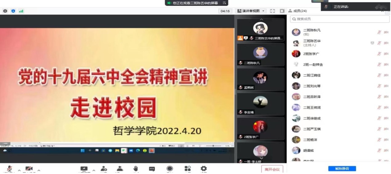 通过此次党的十九届六中全会走进校园直播宣讲,使同学们对党的十九届六中全会精神有了更深刻的把握,积极引导同学们坚定理想信念,增强实现中华民族伟大复兴的决心和斗志,激励同学们为中华民族伟大复兴贡献力量。少年自有少年狂,身似山河挺起脊梁,哲院学子必铭记时代使命,担当时代重任。
