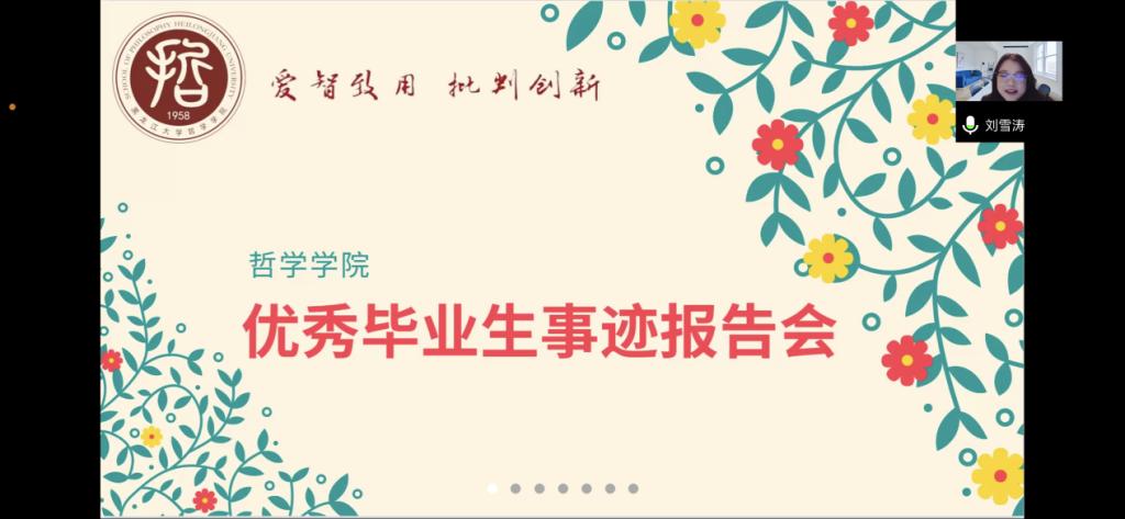 于2022年5月23日晚7点在腾讯会议召开“青春作伴 丁香花开”优秀毕业生事迹报告会。在这次报告会中,郝星宇学长,姚凯文学长和刘雪涛学姐结合自身情况,为学弟学妹们进行了学习、学生工作、科研立项、志愿服务和社会实践等方面的分享。