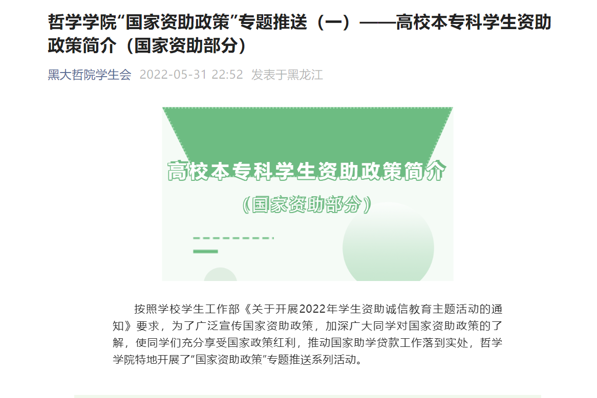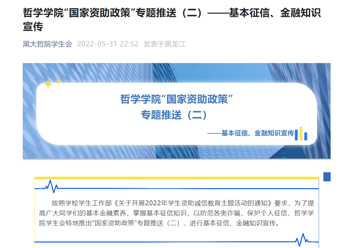 还于2022年5月31日开展了征信金融知识“和”国家资助政策宣传专题推送,为同学进行个人征信和金融活动基本知识与国家相关资助政策内容介绍。