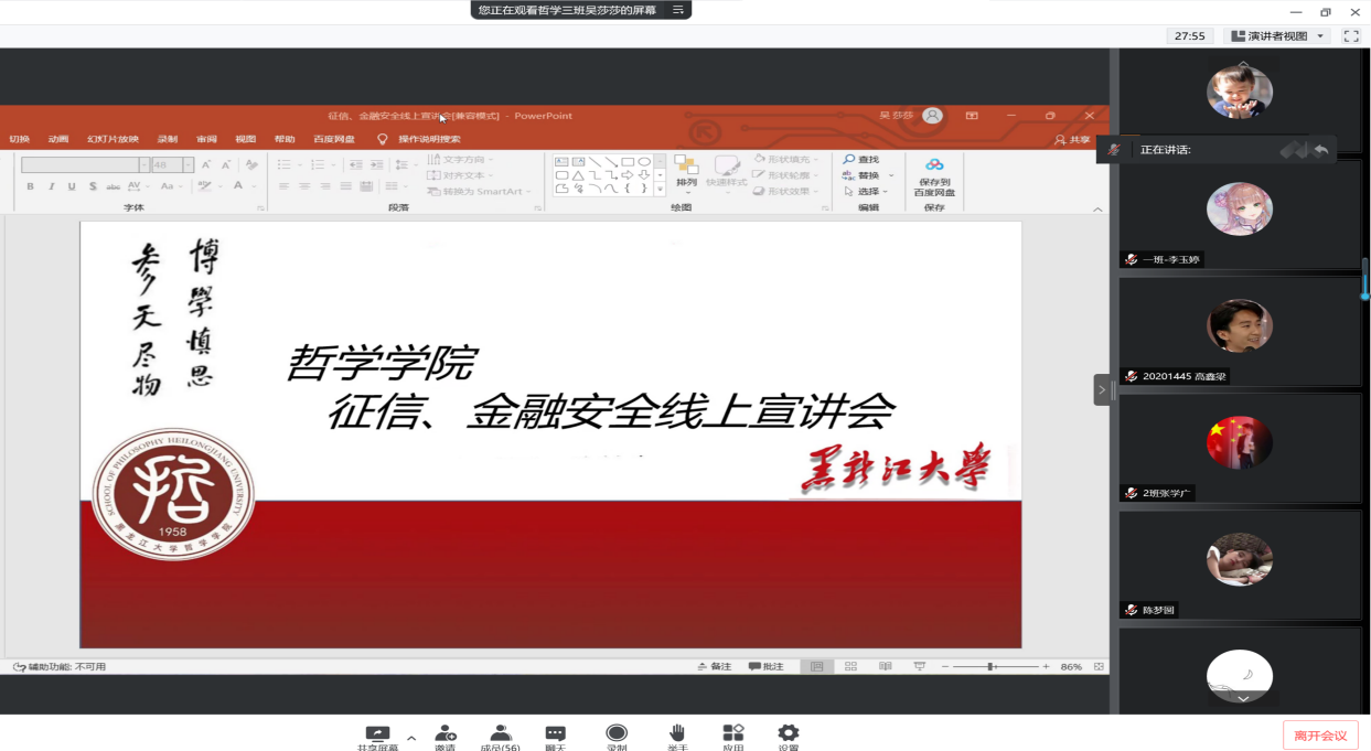 21级学生举行了“征信、金融安全防范”线上宣讲会。宣讲会由h韩漫