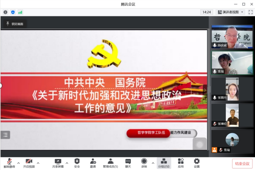 党总支副书记张丽丹老师、19级辅导员孙庆斌老师、20级辅导员张博伦老师、21级辅导员焦瑞老师参加集中学习。