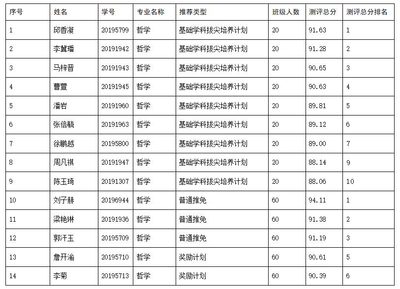 按照《h韩漫 2023年推荐优秀应届本科毕业生免试攻读硕士学位研究生工作实施细则》文件精神,学院成立了推免工作小组,经过成绩排名、资格审核,推免工作领导小组审核通过,拟推荐以下同学免试攻读硕士学位研究生。