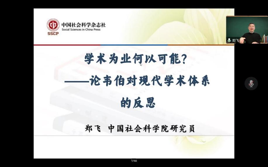 讲座开始,郑飞教授提出:新冠肺炎疫情影响全球,极大地改变了世界秩序,影响到每一个现代人的生活。站在历史的交汇点上,我们当下应该思考哲学社会科学当何为的问题。首先,郑飞教授从韦伯在慕尼黑发表的“科学作为天职”的演讲出发,指出韦伯通过提出工具理性、专业化、官僚制、价值中立等一系列标识性概念,对现代社会所面临问题做出论断。其次,现代学术体系也面临着难以忽视的生存困境。算法正在逐步成为现代学术体系的核心概念,其本质则是一种技术手段。韦伯在此基础上分析了西方文化千百年来持续推进的除魔进程。他认为人类再也不必求助巫术的手段或祈求神灵,技术手段和计算则取代了这一存在。传统的积累方式很难再获取学术的竞争力,算法为王的时代已然来临。也正是在韦伯影响下,技术批判在西方马克思主义那里从现代性批判的一般性视角,上升为现代批判的核心问题。最后,工具理性对价值理性的侵蚀,导致现代学术体系面临了一系列困境,那么学术为业何以可能?具有新康德主义色彩的韦伯提出了现代学术体系的方法论原则。划定学术与政治的界限,将学术与政治一分为二,坚持价值中立的原则。同时,郑飞教授对韦伯价值中立等问题所存在的局限性,进行了批判性反思。
