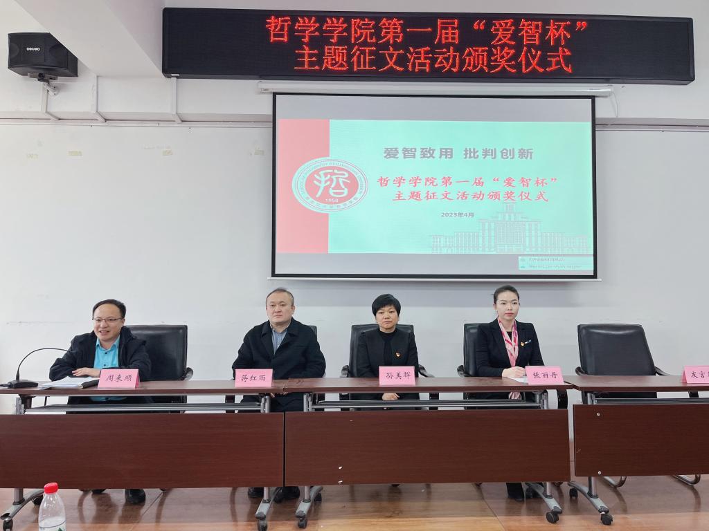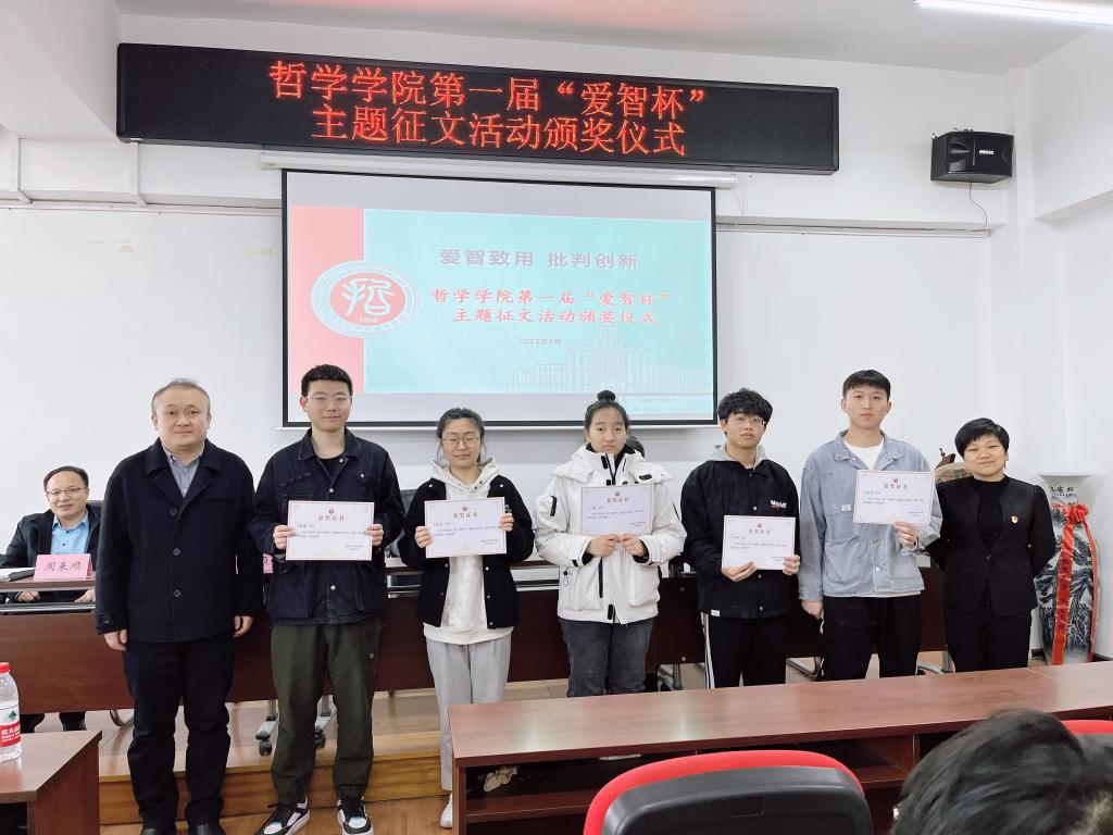 第一届“爱智杯”主题征文活动颁奖仪式圆满结束。未来,哲院学子将继续发扬“博学思源,明哲笃志”的精神,秉递严之训潜学术汪洋,举奋翅之力摘竞赛桂冠,全力以赴、再创佳绩!