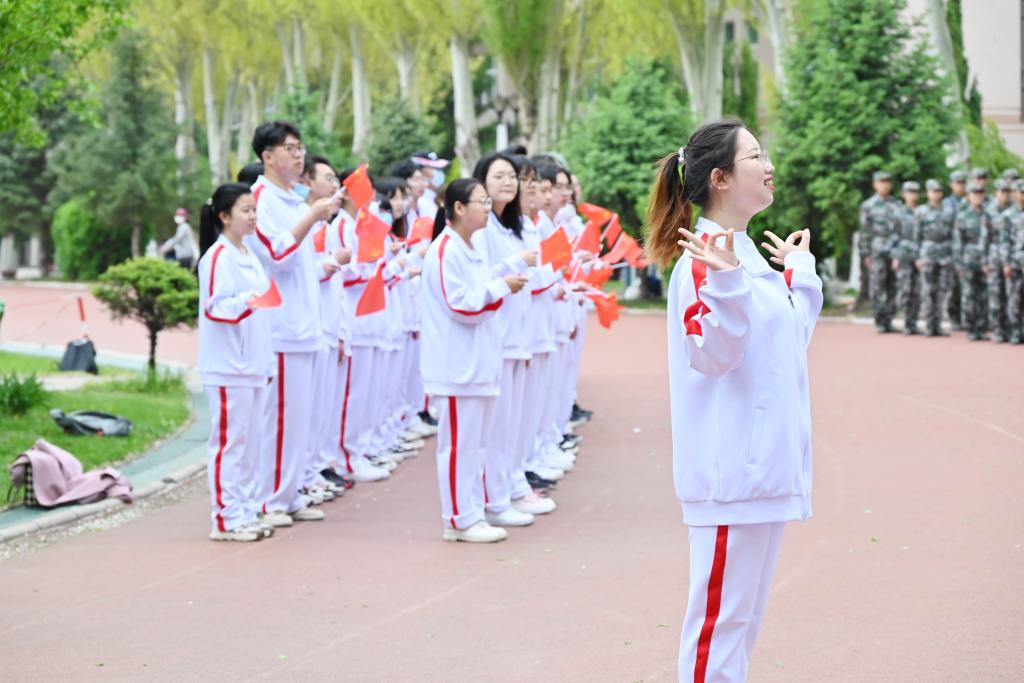 最后,由21名学生代表在国旗下表演手语舞,全体在场同学挥舞五星红旗大合唱《我和我的祖国》。正如歌词中所说“我和我的祖国像海和浪花一朵”,青年的成长定与国家进步同频,心怀感恩地汇入时代的洪流,年轻的生命永不干涸,国家的巨轮前行不止。