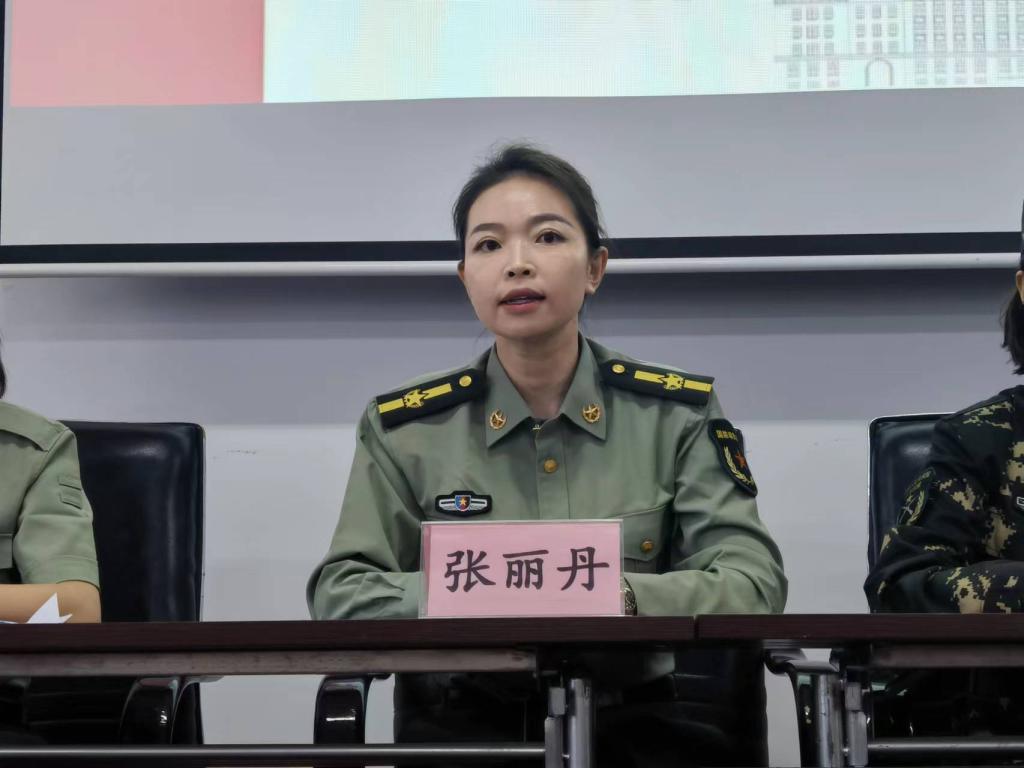 党总支副书记张丽丹老师发表讲话,首先代表学院向参训同学致以亲切的问候,对全体哲院学子寄予了厚望。张老师从以下三点向全体参训学生提出希望与要求:第一,听从指挥,服从命令。希望参训学院以一个军人的标准严格要求自己,尊重教官,服从命令,一切听从指挥;第二,吃苦耐劳,艰苦奋斗。即将开始的军训为同学们提供了一次磨炼意志、锻炼品质、加强纪律的良好机会,希望全体学生发扬吃苦耐劳、艰苦奋斗的革命精神;第三,团结友爱,互帮互助。全体参训同学要团结互助,共同提高,形成争创一流的良好军训氛围。张书记表示,希望同学们能够正确认识军训的目的和意义,克服困难,积极参训,通过军训充分磨练自己,培塑家国情怀,未来成为建设社会主义现代化强国的主力军。同事,张老师强调,大学生参加军训是全面贯彻《国防教育法》和推进学生素质教育的重要举措,希望同学们在军训中认真投入,严守纪律,在教官的引领下,发挥出哲院学子的优良作风,磨炼意志品质、砥砺修身笃行,在属于自己的战场上舞出意志、舞出坚强,最终奔向梦的远方!努力打造一个具有强大凝聚力的战斗集体。