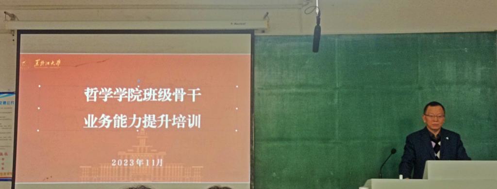 在汇文楼550教室以“深入学习贯彻总书记重要讲话重要指示精神,做品学兼优积极有为担当奉献的班级骨干”为主题召开了班级骨干培训研讨会,23级的学生干部、班级骨干和全体学生参会培训,培训研讨会由23级辅导员孙庆斌主持。