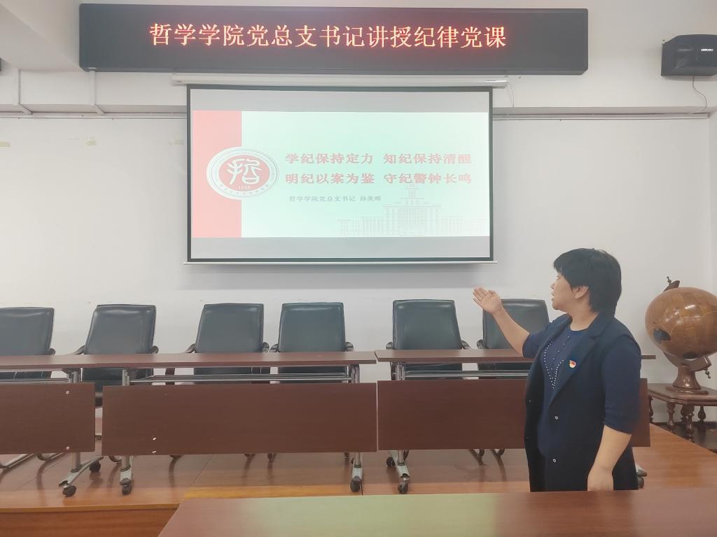 决定开展党纪学习专题教育党课。5月15日下午,在汇文楼937室,学院党总支书记孙美晖做题为“学纪保持定力 知纪保持清醒明纪以案为鉴守纪警钟长鸣”专题党课,学院全体教工党员参加会议。