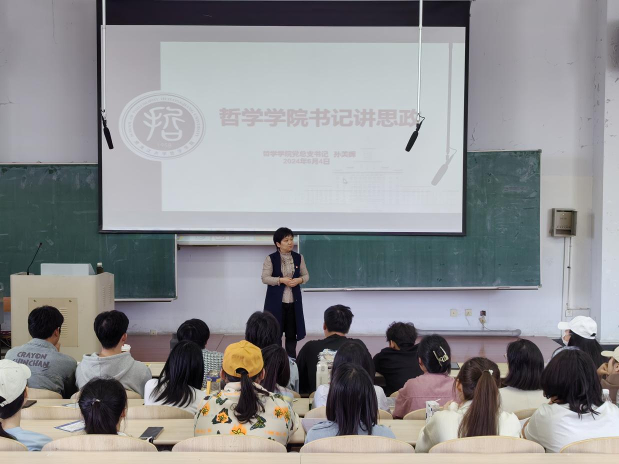 院长蒋红雨于汇文楼337室讲授专题思政课。他表示,铸牢中华民族共同体意识是新时代党的民族工作的主线,也是民族地区各项工作的主线。党在新时代形成的习近平总书记关于加强和改进民族工作的重要思想,是对我们党探索中国特色解决民族问题的正确道路的进一步拓展,是习近平新时代中国特色社会主义思想的民族篇。铸牢中华民族共同体意识、推进新时代党的民族工作高质量发展,是全党全国各族人民的共同任务,作为哲学专业的莘莘学子,要深入学习贯彻党的二十大精神,深刻理解习近平新时代中国特色社会主义思想特别是习近平总书记关于加强和改进民族工作的重要思想所蕴含的马克思主义道理学理哲理和立场观点方法,并充分认识到中华优秀传统文化在铸牢中华民族共同体意识方面具有独特价值,为铸牢中华民族共同体意识工作贡献青春力量。