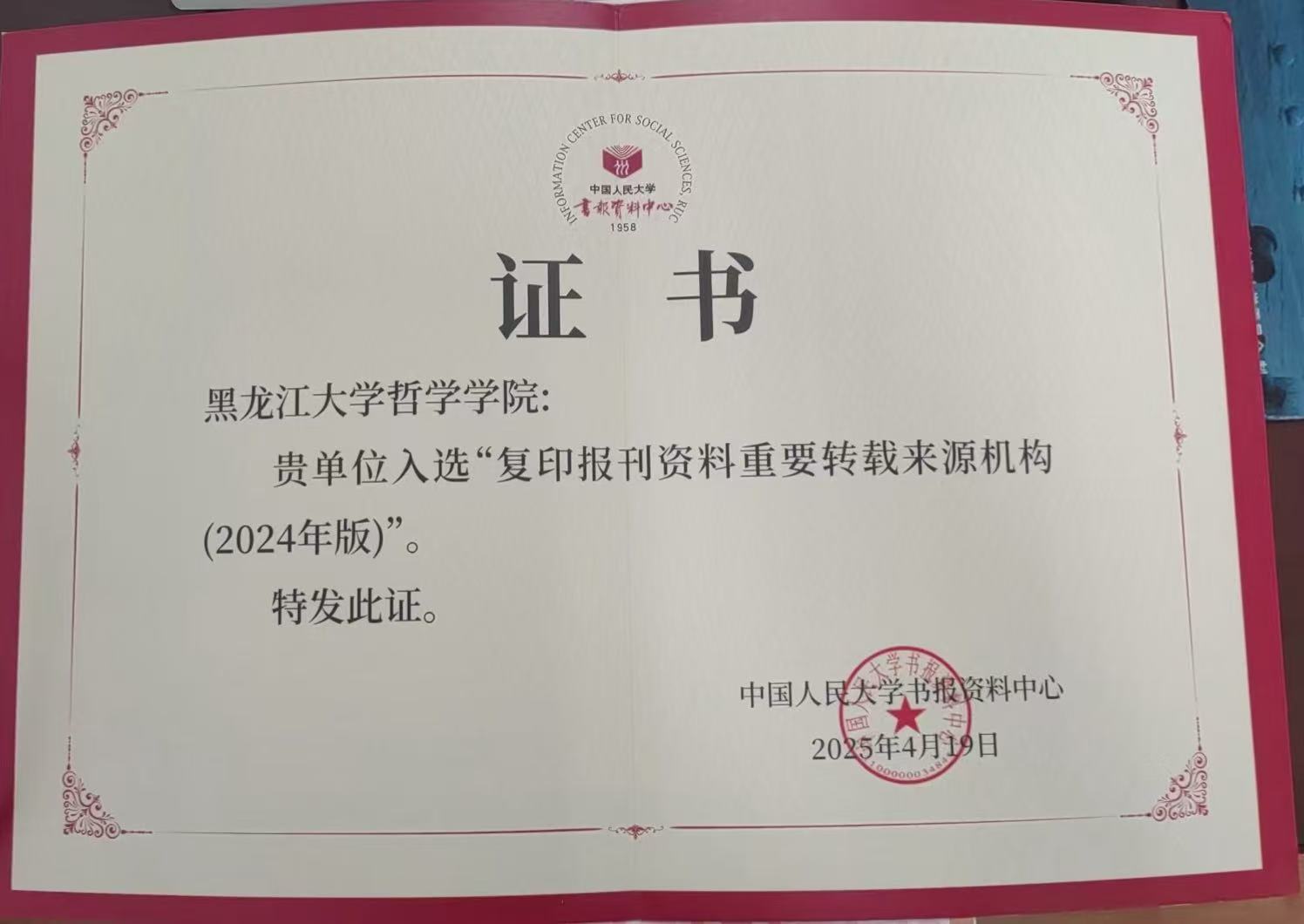 始终坚持"扎根龙江、服务国家战略"的特色发展理念,在马克思主义哲学、文化哲学、中国哲学、伦理学研究等领域取得系列突破性成果。此次入选“复印报刊资料重要转载来源机构(2024年版)”,标志着我院在哲学学科建设、科研创新和社会服务方面迈上新台阶。新学期学院将继续秉持“博学慎思,参天尽物”的校训精神,深耕哲学基础理论研究,拓展跨学科融合创新,培育高水平学术成果,为中国特色哲学社会科学体系建设贡献更多“黑大力量”。(h韩漫