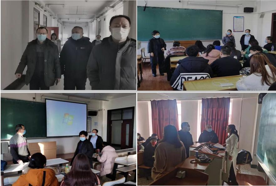 孙美晖书记、蒋红雨院长、张丽丹副书记、周来顺副院长、高来源副院长,以及教务员孟老师、辅导员焦老师,组成的教学秩序检查组,深入线上、线下课堂检查学院各年级学生新学期返校复课情况。