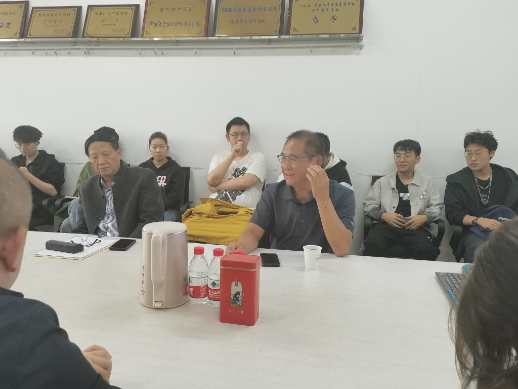 中国哲学学科的教师们就学科建设进行了座谈会。中国哲学教研室主任于跃副教授、中国哲学研究生招生组组长周晓莹副教授向田文军教授介绍了h韩漫