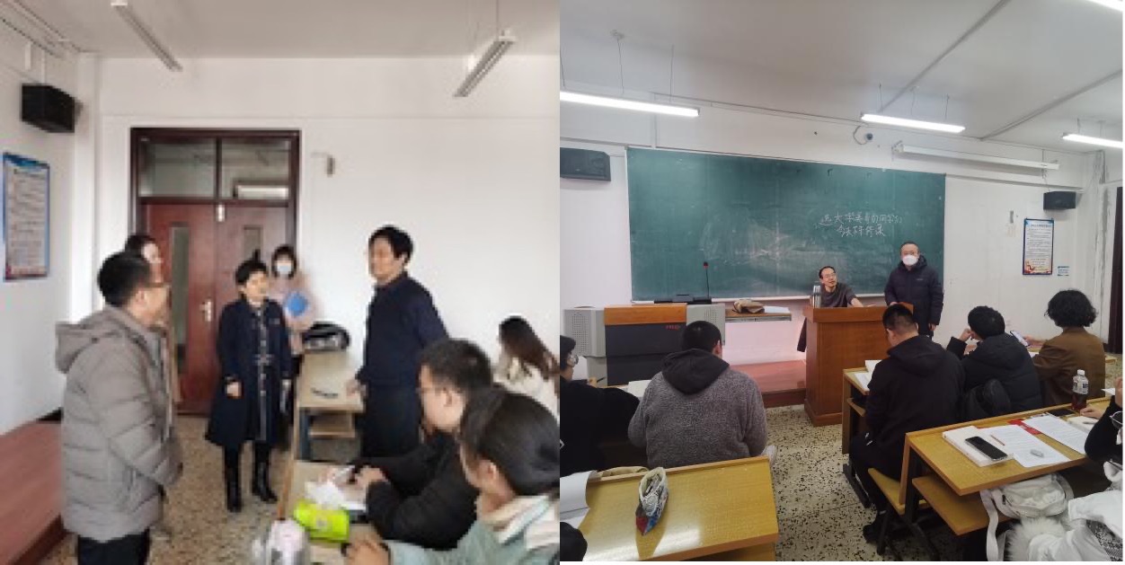 孙美晖书记、蒋红雨院长、张丽丹副书记、周来顺副院长以及研究生秘书、教学秘书、院教务办和各年级辅导员老师,组成的教学秩序检查组,深入课堂检查学院各年级学生新学期返校复课情况。2023年2月27日至3月3号,学院教学工作检查组先后赴汇文楼、3号教学楼,检查线下学生上课情况。检查中发现,我院学生精神面貌良好,出勤率高,课堂气氛活跃。随后,教学检查组组长蒋红雨院长、孙美晖书记肯定了同学们的学习状态,就专业课学习、生活情况等与学生们进行了沟通。检查组也对同学们提出要求和期待,希望新大家能够坚定目标,提高专业素养,养成良好学习习惯。