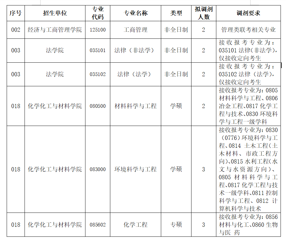 我校在“全国硕士研究生招生考试网上调剂服务系统”第五轮调剂开放时间为4月14日10:00—4月15日08:00,届时考生可登陆调剂系统填报调剂志愿。我校调剂志愿锁定时间为36小时,锁定时间到达后,考生可继续填报其他志愿。考生接到复试通知后必须在规定时间进行回复,在规定时间内未回复则视为自动放弃,取消复试资格。第五轮开通调剂专业、缺额信息及调剂相关要求如下,未标明外语语种要求的专业,外语语种按照《h韩漫